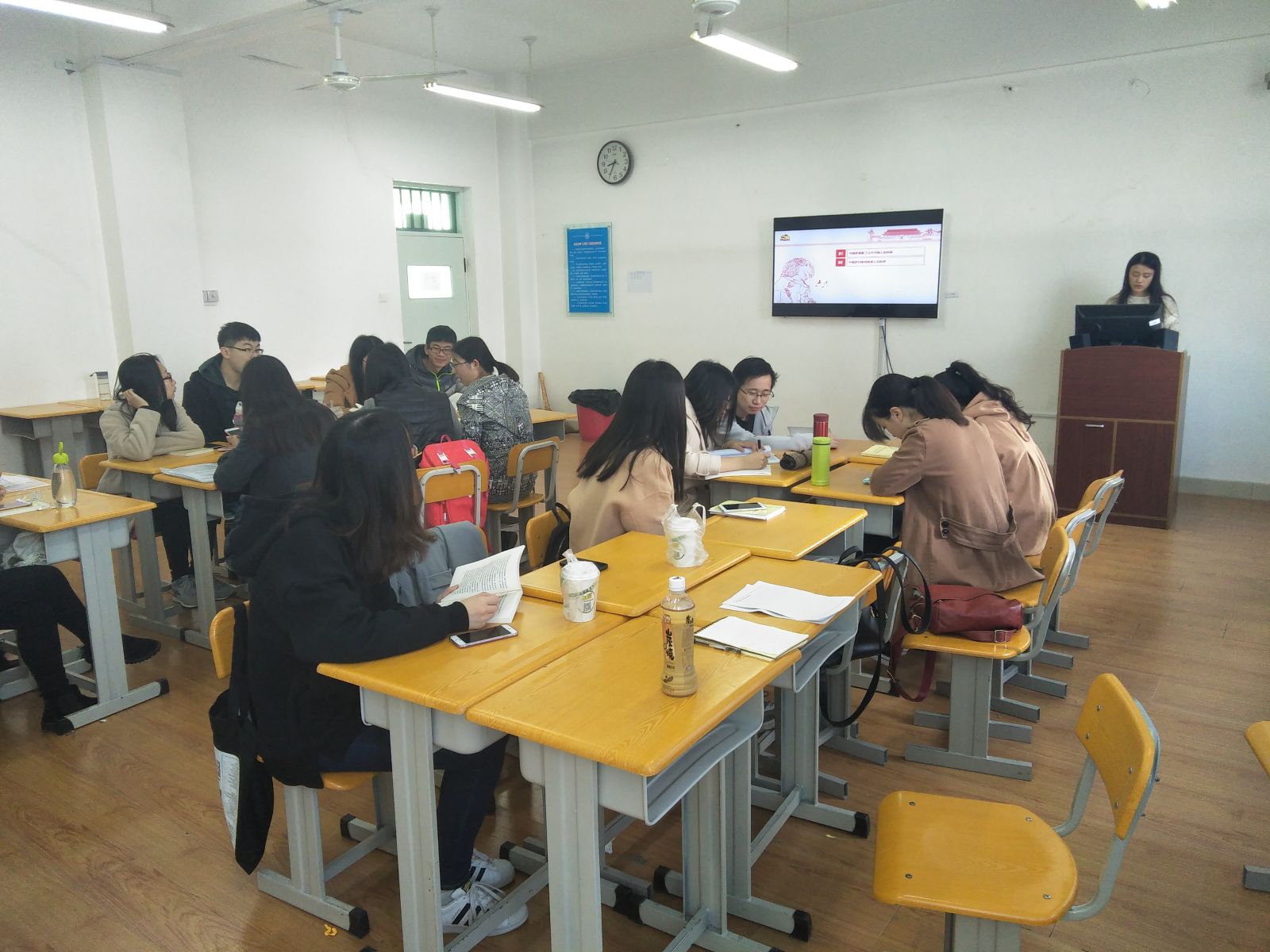 活动伊始,刘艺同学为大家介绍了本次活动的主旨:通过交流,深入学习贯彻习近平总书记系列重要讲话精神,协调推进“四个全面”战略布局,为实现“两个一百年”奋斗目标和中华民族伟大复兴的中国梦而奋斗。随后,2014级、2015级党员发展对象各分为两组,分别就《习近平总书记系列重要讲话读本》的一至十六章内容上台交流展示。在交流过程中,同学们了解到该读本围绕实现中华民族伟大复兴的中国梦、坚持和发展中国特色社会主义,围绕协调推进全面建成小康社会、全面深化改革、全面依法治国、全面从严治党“四个全面”战略布局,围绕牢固树立创新、协调、绿色、开放、共享的发展理念,统筹推进经济、政治、文化、社会、生态文明五位一体建设,围绕加强国防和军队建设,推动构建以合作共赢为核心的新型国际关系,学习掌握科学的思想方法和工作方法等十六个专题,全面准确深入阐释了以习近平同志为核心的党中央治国理政新理念新思想新战略。同学们交流完毕后,本次《习近平总书记系列重要讲话读本》学习活动结束。