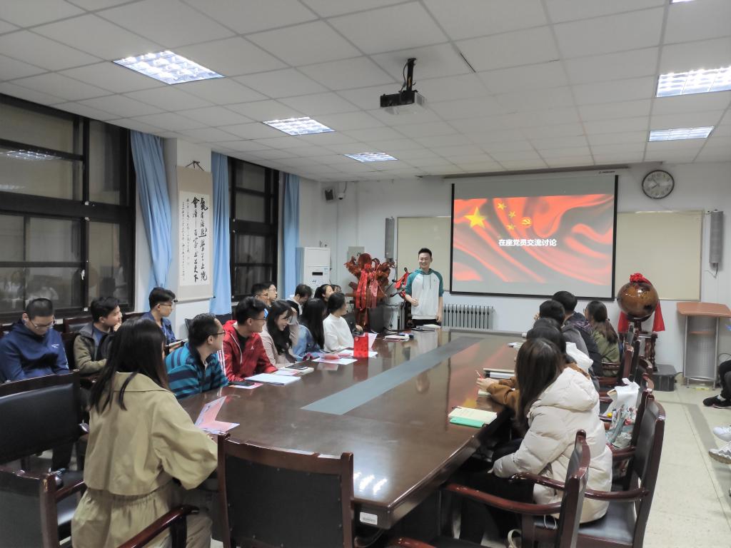 活动伊始,全体党员观看《画说党史》短片,重温党史大事记。随后,党支部书记王祎璠代表党支部委员会向过“政治生日”的学生党员赠送生日贺卡,以此激励、鞭策党员时刻牢记党员身份,切实增强党员的荣誉感、责任感、使命感。赠送后,各位党员和在座党员分享了自己的“入党初心”,以及入党后自己在党组织栽培下的成长与进步。与会的预备党员,也结合个人思想、工作和学习实际开展了交流,对照党章党规,查找自身差距,深入进行自我剖析,并纷纷表示要不忘初心,始终保持奋斗精神和革命精神,把“不忘初心、牢记使命”主题教育中的学习成效体现到增强党性、提高站位、发挥作用上来。活动中,在正式党员的领誓下,全体党员重温了入党誓词,并集中观看了《中国有了共产党》系列记录片,以此勉励各位党员不忘初心、砥砺前行。
