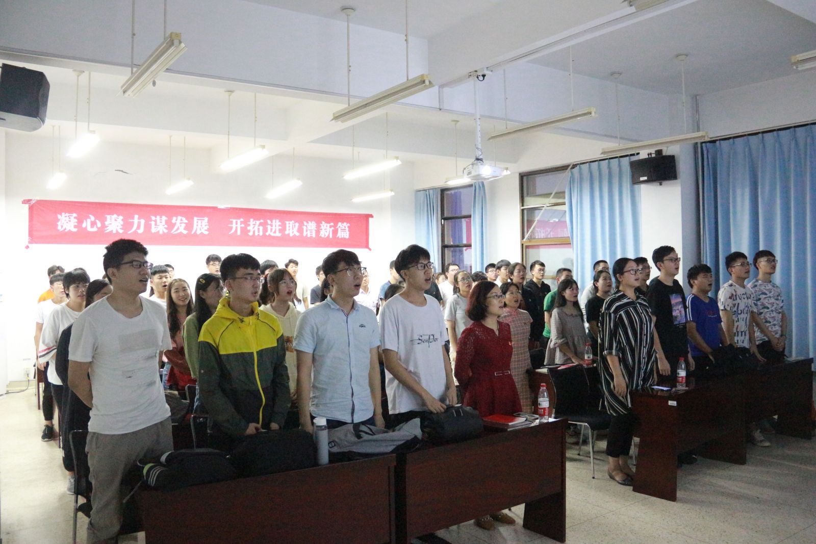 该次活动主要通过观看视频、合唱国歌、听歌识曲、教师分享、师生共话和合唱校歌这几个环节,回顾了新中国70年的披荆斩棘、风雨兼程,表达了对祖国母亲70华诞的衷心祝愿。教师党员通过故事分享的形式,为同学们讲述了“我们心中祖国的变化”。老师们从自身经历出发,分别从交通工具的变化,通讯工具的进步,社会主义新农村的建设、生活质量的提高等不同方面感慨短短七十载祖国变化之巨,并表达了对祖国未来的期待。通过“我”、“祖国”、“新时代”这三个关键词,教师党员组织所在学生小组进行了热烈的讨论。最后党支部教师代表亓兴勤老师总结到:“爱国其实离我们并不遥远。对于大家来说,爱岗敬业,做好本职工作,其实就是爱国。教师党员从备好每一次课,上好每一堂课,指导好每一位学生做起;同学们从听好每一次课,完成每一次作业,学好每一门基础知识做起。希望我们共同为祖国的发展增砖添瓦。”