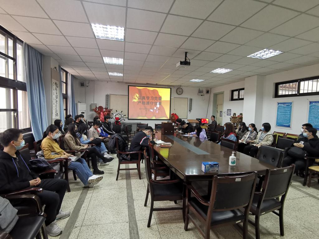 本站讯 为开展好党史学习教育,3月26日下午,万象城娱乐awc线路本科生第二党支部于图东环楼208室召开会议,组织开展主题党日活动。本次活动以“认真学习党章,严格遵守党章”为主题,党支部书记孙磊主持此次活动。
