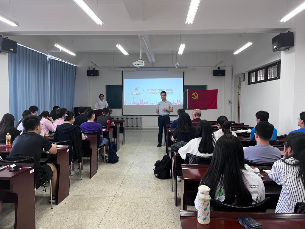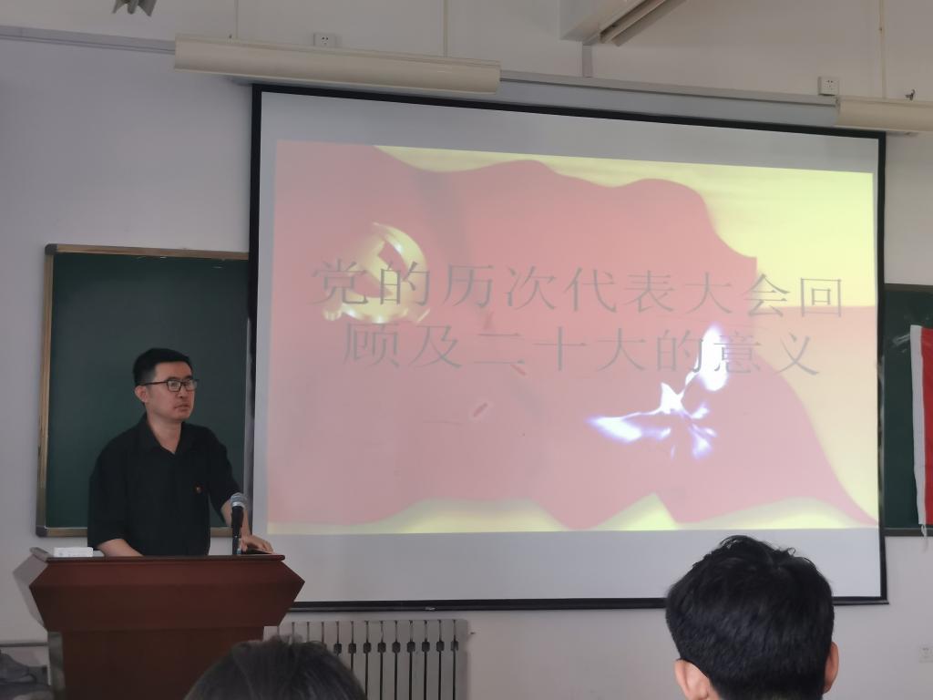 活动伊始,魏佳佳介绍了到场老师和活动主题。随后,本科生第二党支部书记孙磊从中国共产党全国代表大会是我国最高领导机关、中国共产党全国代表大会是党光辉历史的决策者与见证者、历次会议的内容及党章的修订、我们当前面临的形势四个方面分享了自己的学习感悟。紧接着,全体党员集中观看视频《喜迎党的二十大——以史为鉴,再创未来》,再次回顾了建党以来我国经历的重要历史事件,并对中共一大召开以来印象最深的内容展开讨论。其中,公共数学教学部教工党支部赵华祥向与会党员分享了自己儿时生活条件艰苦的经历与十一届三中全会后中国的变化,使同学们对我国的发展史感受更加深刻。随后,本科生第二党支部韩林轩、王肖晴、王鹏宇从世纪疫情、计划经济与市场经济等角度依此发表自己的观点。随后,万象城官网党委书记于振涛、公共数学教学部教工党支部书记穆增超总结本次活动,强调联合主题党日活动是师生党员沟通想法的有效途径,鼓励青年人在学习专业知识的同时也要提高自身修养,在问题前能够站出来,推动民族的发展。
