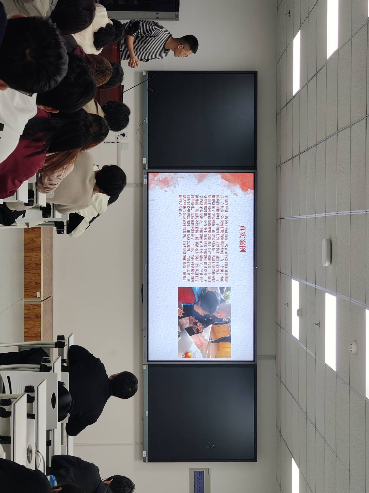 活动开始后,七个小组按照顺序依次上台展示,各小组围绕青年人如何把小我融入大我、锤炼党性修养并立志奋斗报国这一主题进行了深入的思考。各小组结合党的历史、党的理论、党的精神与新时代模范人物的伟大事迹进行了深入浅出的讲解。有的小组通过讲述革命先烈的英勇事迹,带领大家重温党的光辉历程;有的小组通过介绍新时代英雄模范故事,从小切口、小故事引导大家思考如何向先辈们学习,将党的理论知识转化为实际行动,为实现中华民族伟大复兴的中国梦贡献自己的力量;有的小组讲述了绿水青山就是金山银山这一理论的重要意义,呼吁大家积极践行,起到带头作用……各小组成员表达流畅,展示形式多样,既有问答互动也有视频回顾,主讲人的分享也展现了青年学子的责任担当和奋发有为的精神面貌。展示结束后,在场评委根据思想认识、展示内容、表达效果等维度进行打分,并最终评出优秀小组,为其颁发精美奖品。