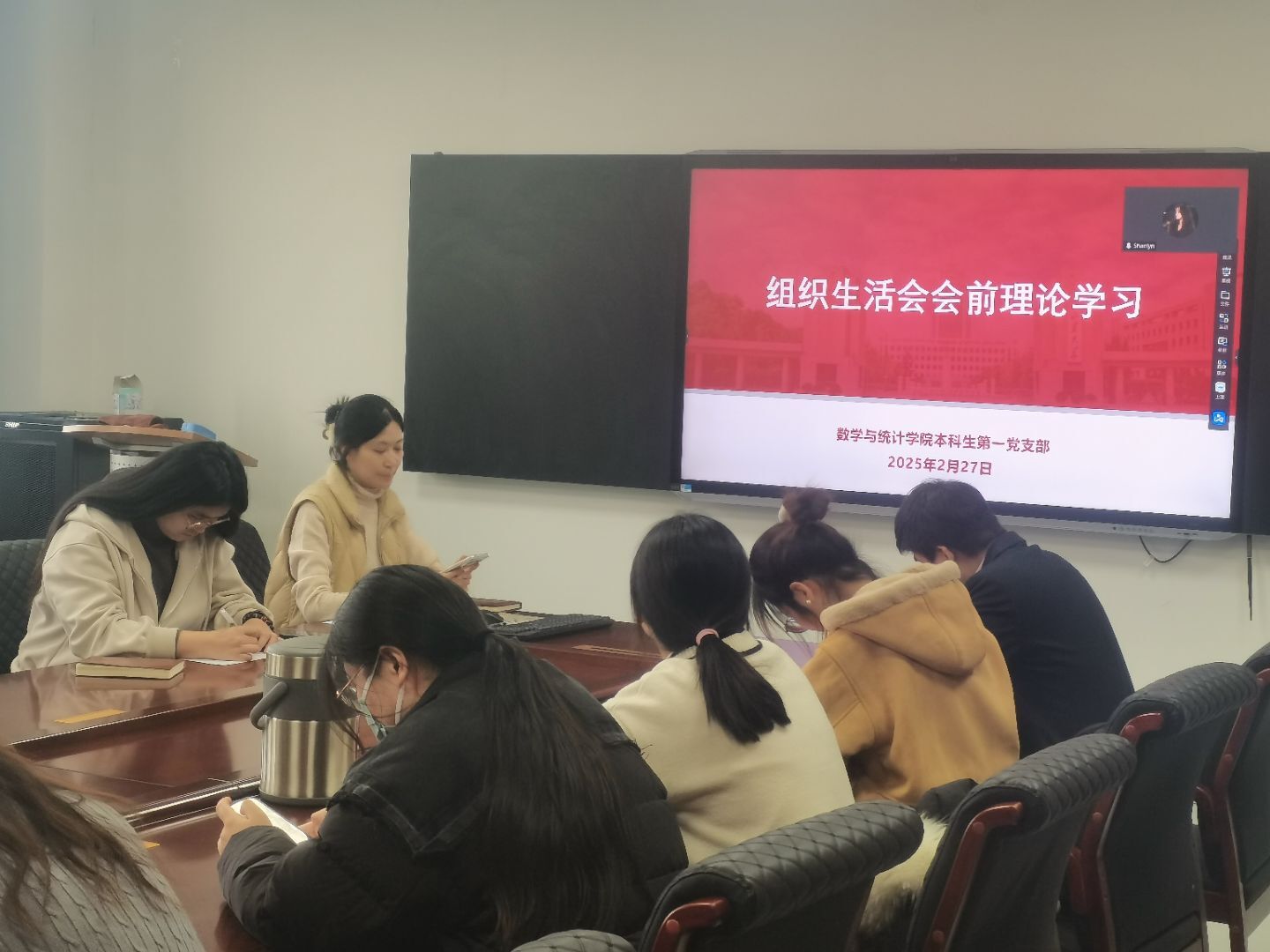 本站讯为高质量开好党支部组织生活会,打牢思想基础,2月27日下午,万象城娱乐awc线路本科生第一党支部于北衡楼1421组织支部全体党员开展集中理论学习。会议由党支部书记王祎璠主持。