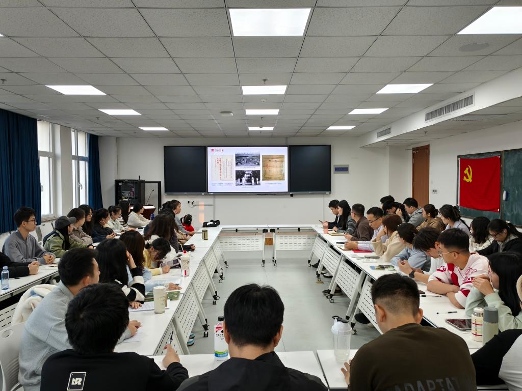 本站讯 10月31日下午,“百廿四载·与青春同行”主题党日活动在北衡楼1420室举行。数学与应用数学系教工党支部与本科生第一党支部的师生党员、入党积极分子齐聚一堂,在教工党支部书记陈明涛的主持下,展开了一场跨越代际的对话,共同追溯百廿四载校史荣光,叩问青春成长命题,传承山大精神血脉。