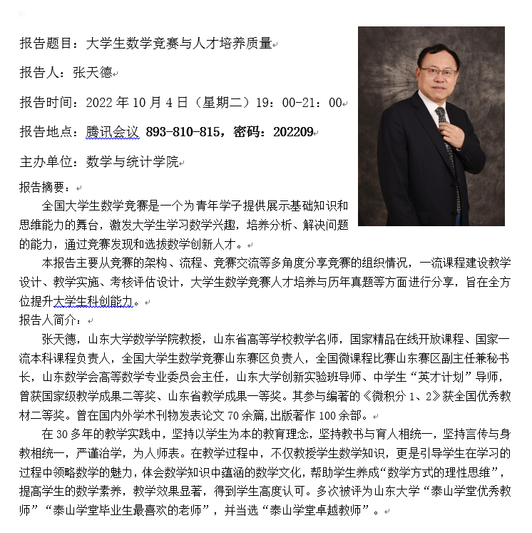 万象城娱乐awc线路张天德教授大学生数学竞赛报告