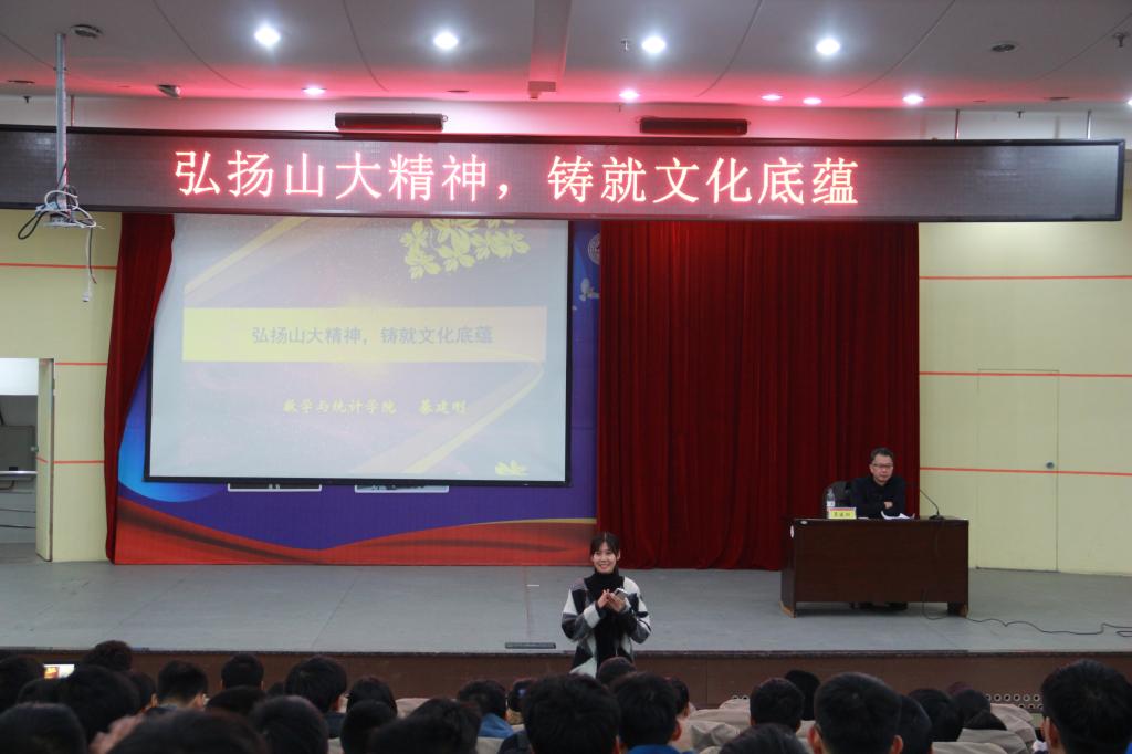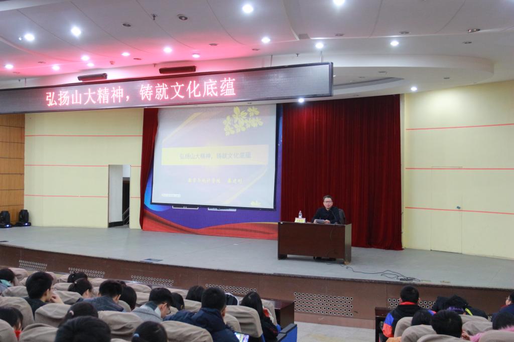 本站讯为增强新生对学校的文化认同,进一步继承和弘扬山大精神,11月20日下午,万象城官网常务副院长、党委副书记綦建刚在玲珑学堂为新生开展“弘扬山大精神,铸就文化底蕴”入学教育主题讲座。讲座由学院新生辅导员王祎璠主持,学院2019级全体新生参加。