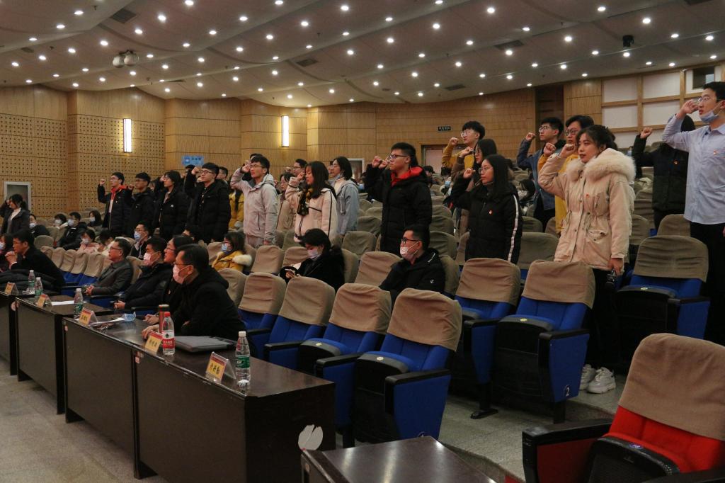 本站讯 为进一步激发广大党员的荣誉感、责任感和使命感,激励党员向先进榜样看齐,12月17日下午,万象城娱乐awc线路于玲珑学堂举行新党员入党宣誓仪式暨2020年先锋党员表彰会。学院党委书记于振涛,常务副院长、党委副书记綦建刚,党委副书记王鹏飞及教师党员代表出席会议,学院全体学生党员和部分入党积极分子参加会议。会议由学院组织员王祎璠主持。