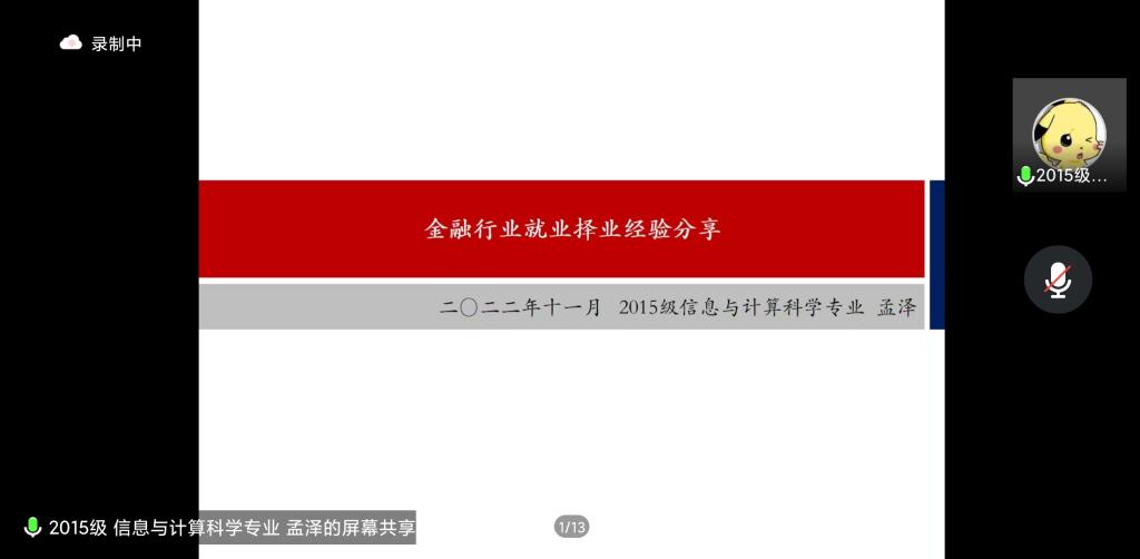 本次“天南地北数学人——数学人的金融人生”经验分享会为解答了同学们在金融领域发展的疑惑,丰富了同学们的相关知识面,助推同学们进一步思考自己的职业生涯规划,为未来做好知识和能力的储备,更加顺利地实现自己的梦想。