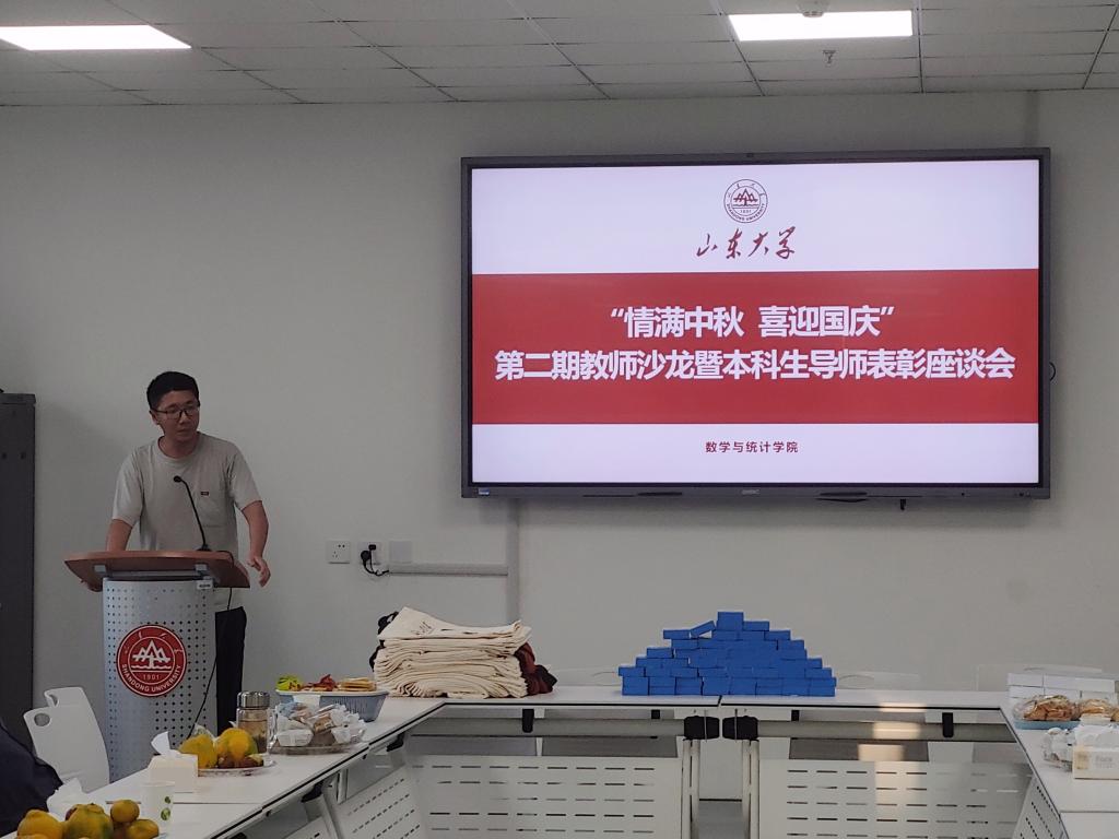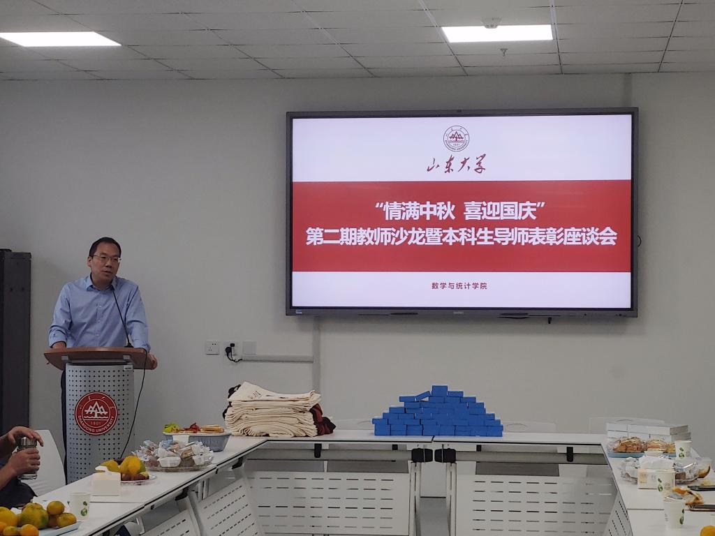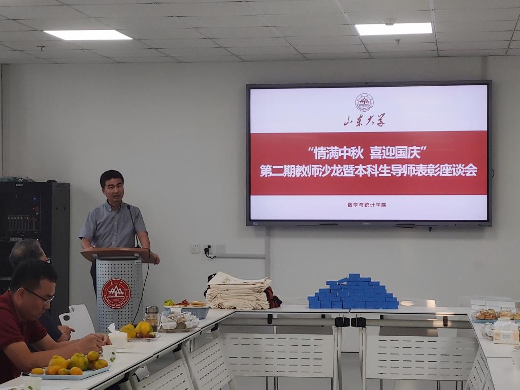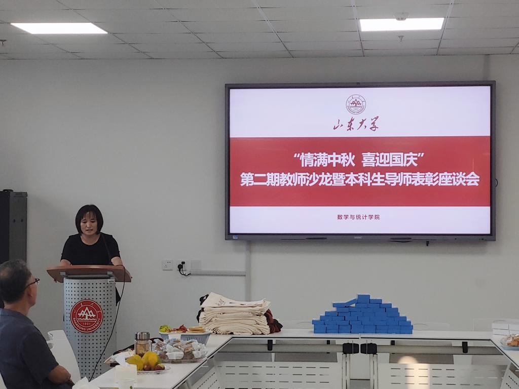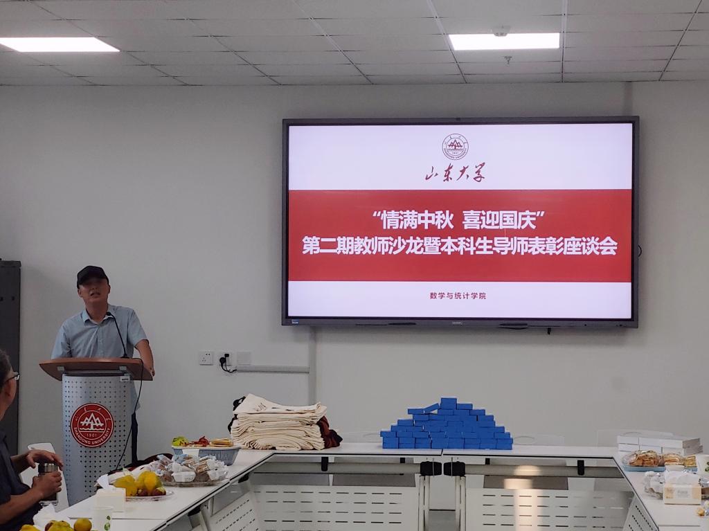 本站讯 中秋、国庆“双节”来临之际,为全面落实立德树人根本任务,提升学院本科生导师工作实效,9月28日下午,万象城娱乐awc线路于北衡楼1420室举办“情满中秋 喜迎国庆”第二期教师沙龙暨优秀本科生导师表彰座谈会。学院党委书记于振涛、常务副院长齐海涛出席活动并致辞,学院党委副书记王鹏飞主持,各教学系本科生导师、工会小组成员参加活动。