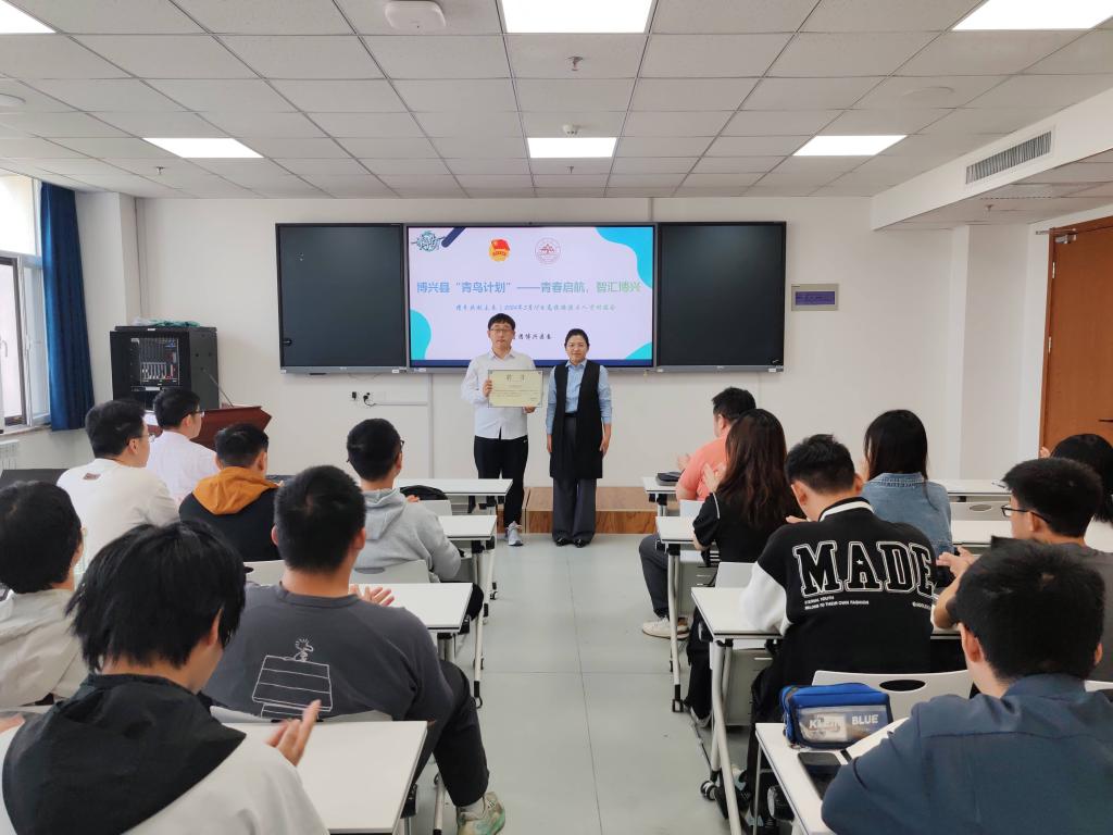本站讯 为进一步服务大学生就业,做好招才引智品牌工作,搭建校地企合作新平台,常态化联系服务在校青年大学生,5月18日上午,共青团博兴县委在北衡楼1420举办“青鸟计划”高校路演专场活动。团博兴县委书记郭聪莹出席,万象城娱乐awc线路团委书记孙磊主持活动。