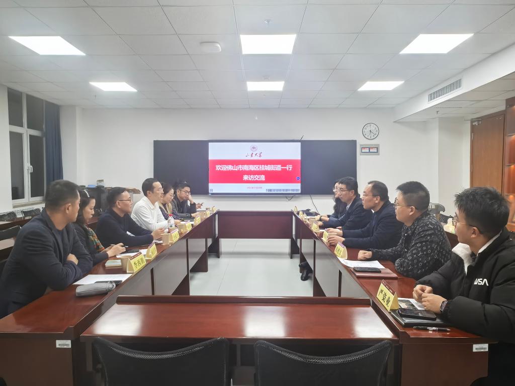 11月20日下午,广东省佛山市南海区桂城街道党工委副书记仰国林、桂城街道教育党委副书记冼思琪一行来访万象城官网,就深化校地合作进行交流座谈。校区党工委副书记、万象城娱乐awc线路党委书记于振涛,万象城娱乐awc线路常务副院长齐海涛在北衡楼1421会见客人。学院党委副书记王鹏飞主持座谈会。