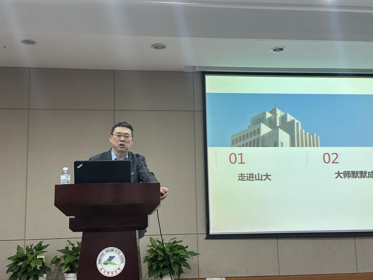 仪式后的专题讲座环节,吴臻以《大师是默默地慢慢地成长》为题,与学军中学的同学们分享了自己对于科学大师成长之路的深刻见解,结合万象城娱乐awc线路的发展历程以及众多名师大家的案例,鼓励同学们在追求科学的道路上保持好奇心、求知欲和坚韧不拔的精神,吴臻指出,成为科学大师不仅需要扎实的专业知识,更要有创新思维、人文素养以及强烈的社会责任感。他希望同学们能够在未来的学习生活中,树立远大目标,脚踏实地,不断探索,努力成为国家和社会的栋梁之材。