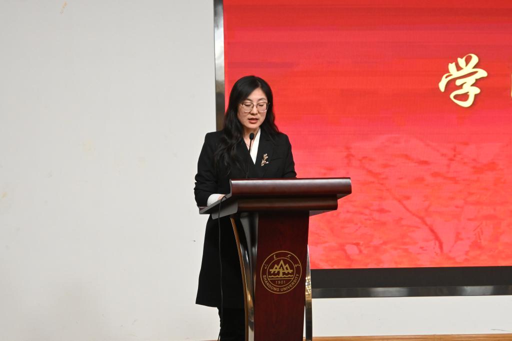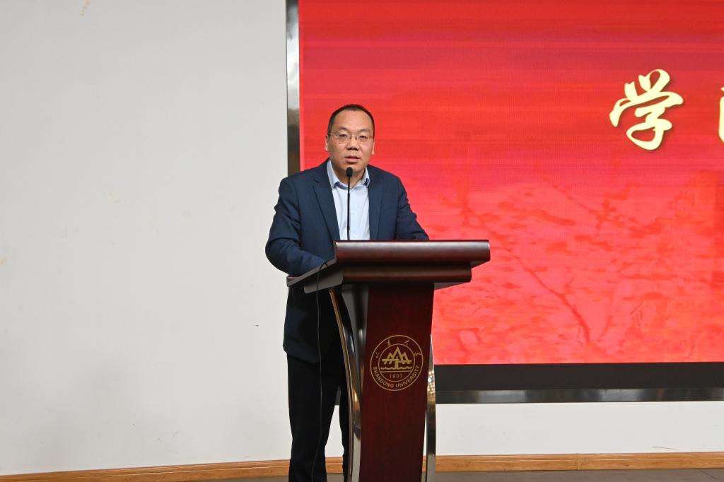 蒋玉蛟作为教师代表进行分享发言,他立足个人在山大求学到任教的身份转变,结合个人科研成长的经历,鼓励青年学子克服功利心态,向内用力,相信长期积累的力量,把数学的追求、学术的志气融入到服务国家发展战略,在奋斗中找到自身价值。
