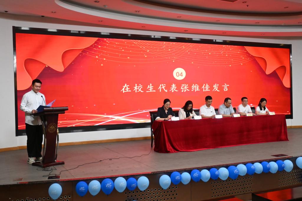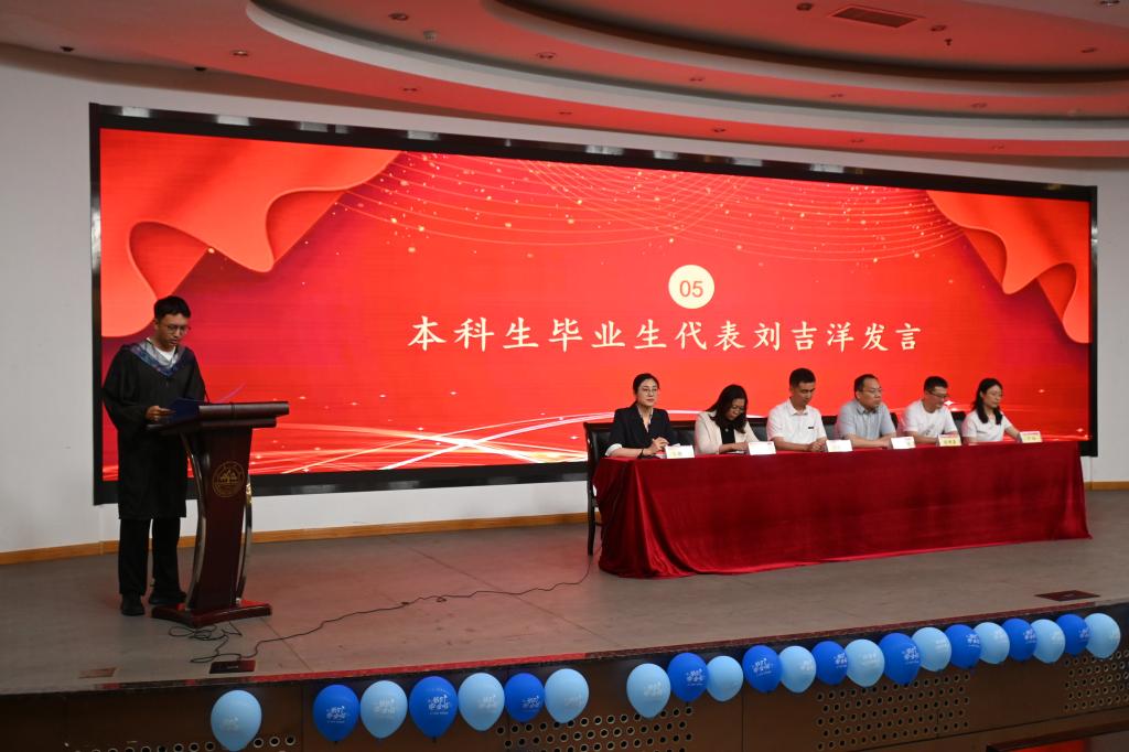 在校生代表张维佳发言中对学长学姐表示祝贺,并表示将以其为榜样,努力学习,踏实进取,与毕业生一起肩负起为母校争光、为国家效力的重任。本科生毕业生代表刘吉洋分享了大学四年的成长与收获,表达了对学院以及老师、同窗的感激之情和对母校的依依惜别之情,表示将弘扬和传承山大精神,在工作岗位矢志奋斗。研究生毕业生代表李善勇分享了在威海8年求学及做学生工作的经历,表示将在今后学院校友工作中发挥桥梁纽带作用,积极贡献力量。李善勇带领全体毕业生进行庄严宣誓。