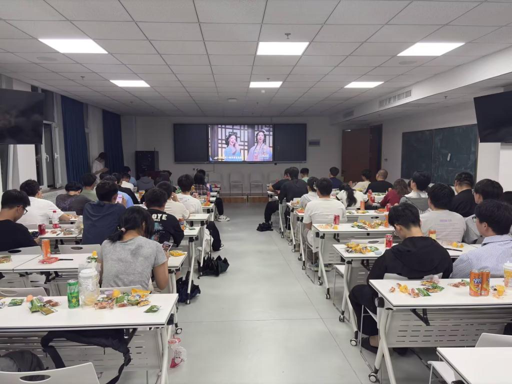 茶话会现场,学院为同学们精心准备了月饼等小食,并设置了“猜谜语”“不能说的秘密”等一系列互动游戏,现场氛围温馨而活泼。现场举办了“书信寄情”活动,同学们以信纸为介,书写对家人、友人的思念之情,感受中华传统书信文化的魅力。全体师生共同收看了2025年央视中秋晚会。