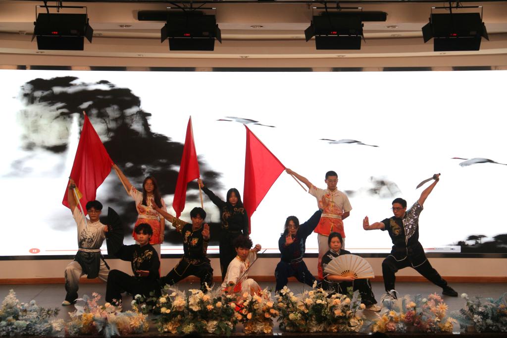 第二篇章“薪火照新途”聚焦于新生军训与校园初体验。武术表演《武艺乾坤》一招一式尽展青春力量与中华武魂,脱口秀《军训报告》以幽默诙谐的方式分享了军训趣事与感悟,创意被套舞《拼好“歌”》构思巧妙、趣味横生,合唱《像你这样的朋友》深情唱响了同窗情谊的珍贵。