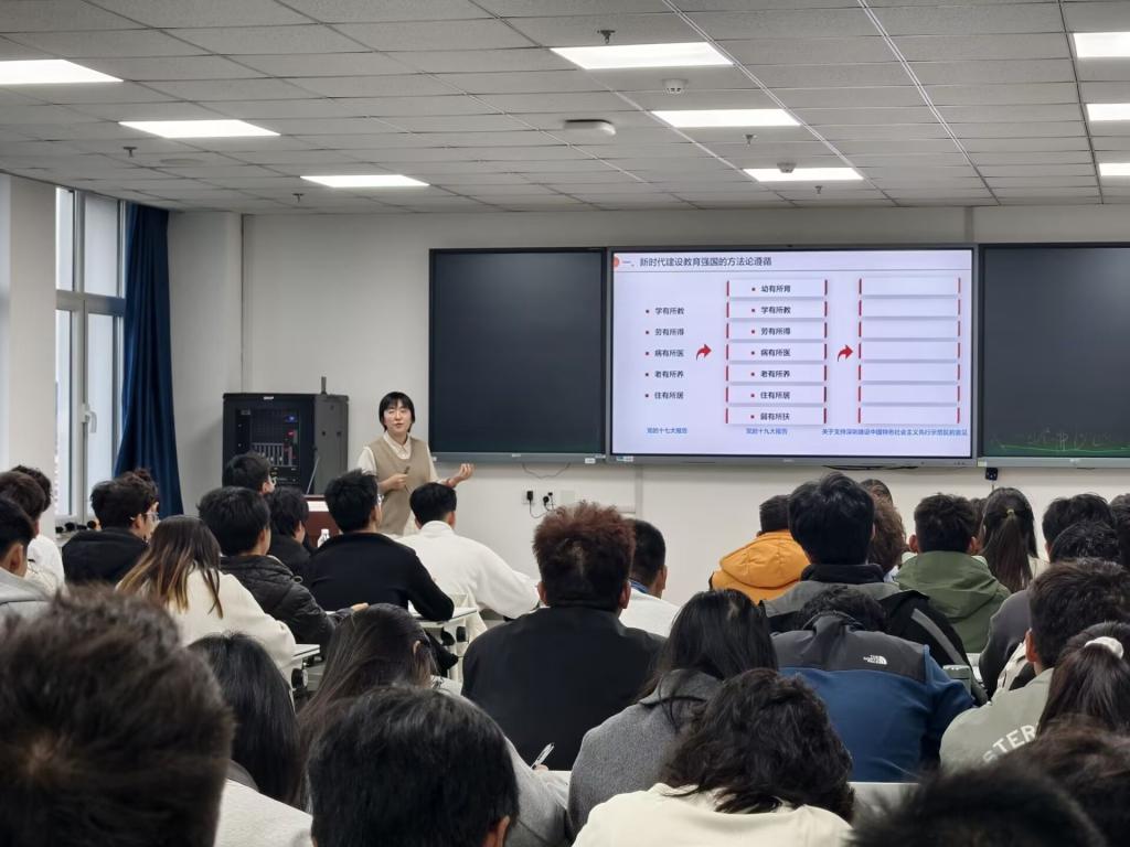 开营仪式后,韩巧霞以《筑牢教育强国安全防线强化青年学生责任担当》为题开展专题讲座。她立足新时代教育强国建设的宏观背景,从“方法论遵循”“教育防线筑牢”“青年使命担当”三个维度展开论述,结合鲜活现实案例,清晰阐明当前教育强国建设面临的机遇与挑战,引导学生骨干端正思想认知,明确自身在维护教育安全、传播正向价值中的重要作用,鼓励广大青年以青年之担当、青春之活力为教育强国建设注入鲜活动能。