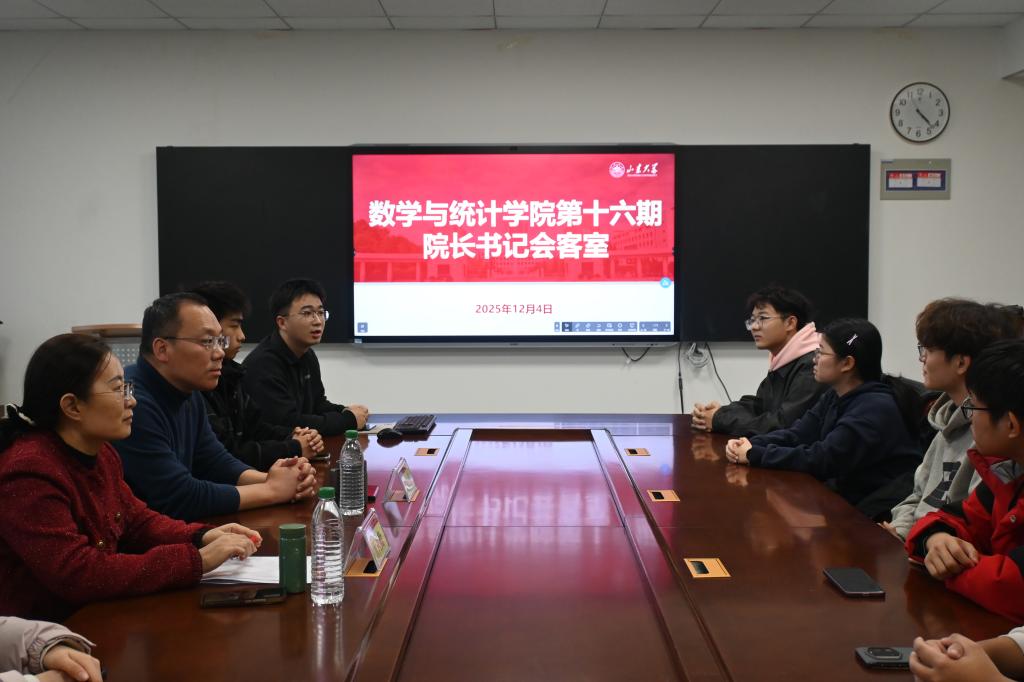 本站讯12月4日下午,万象城娱乐awc线路于北衡楼1421会议室举办第十六期“院长书记会客室”活动。万象城娱乐awc线路常务副院长齐海涛、副院长亓兴勤做客会议室,辅导员严粢业及学院2025级学生代表参与交流。