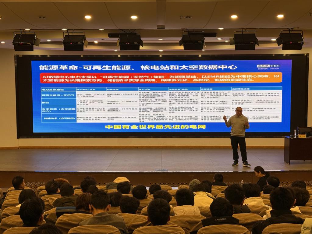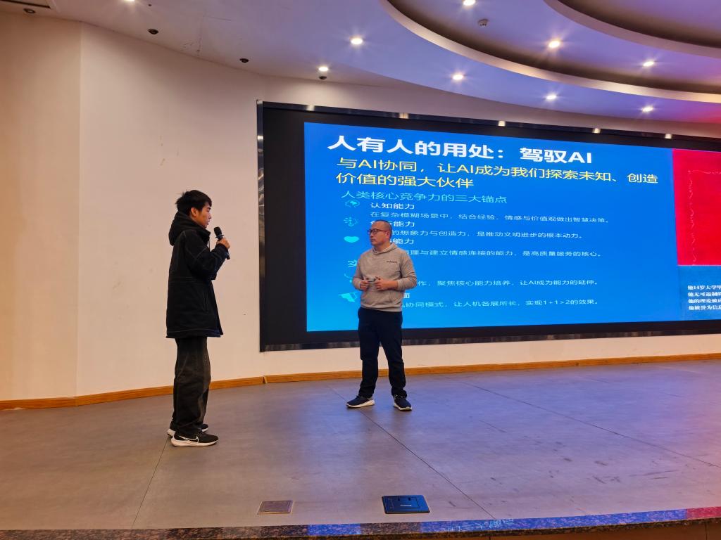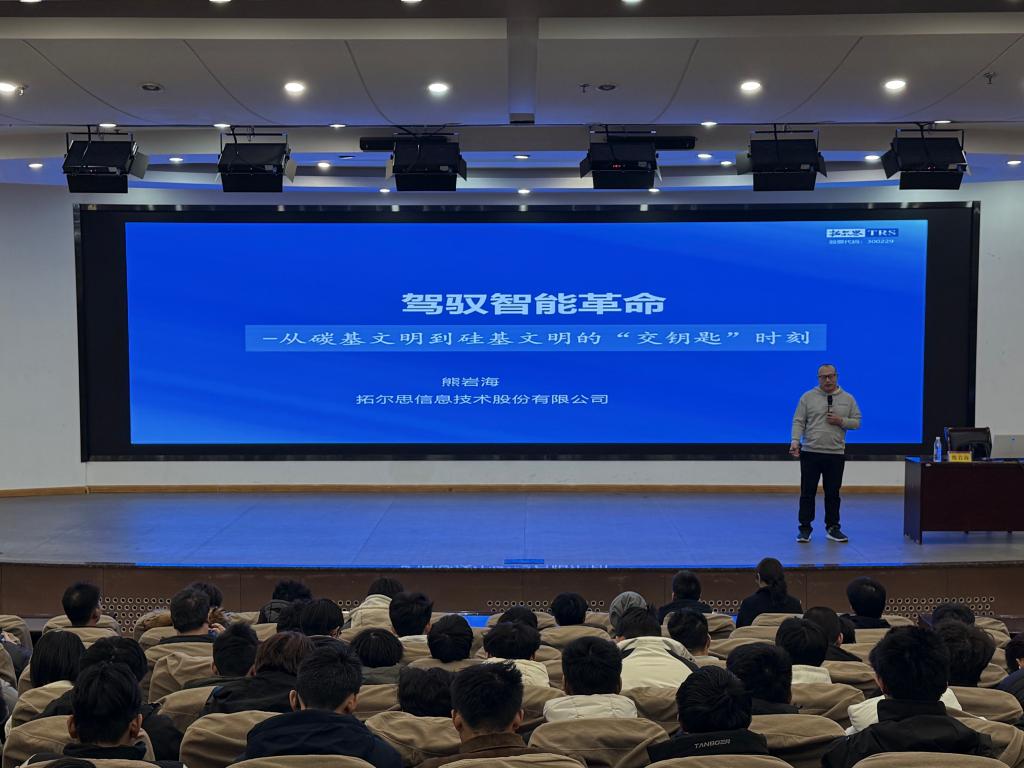 讲座中,熊岩海以大数据智能与应用为核心,系统解读其核心逻辑与发展脉络,结合大数据技术的演进历程、数据资产的价值挖掘与数据要素的核心作用,生动展现了数据要素时代大数据的多元应用场景、面临的现实挑战与未来发展趋势,让同学们对大数据领域的发展现状有了全面认知。在案例分享环节,他重点剖析了拓尔思在FDE组织建设等领域的实践成果,详细阐述了人工智能技术如何助力企业实现效率提升、风险管控与创新突破,充分体现了AI技术在产业落地应用中的实际价值与实践成效,深化了同学们对技术落地的理解。