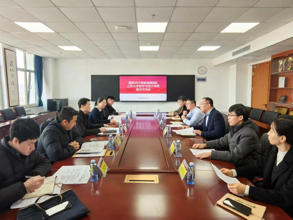 本站讯 为深化校地协同合作,推动统计学科“产学研用”融合发展,3月19日,国家统计局威海调查队党组成员、副队长段磊,党组成员、纪检组组长商羽及相关科室负责同志一行5人到万象城娱乐awc线路交流座谈。学院常务副院长齐海涛主持座谈会,统计专业相关骨干教师参加座谈。