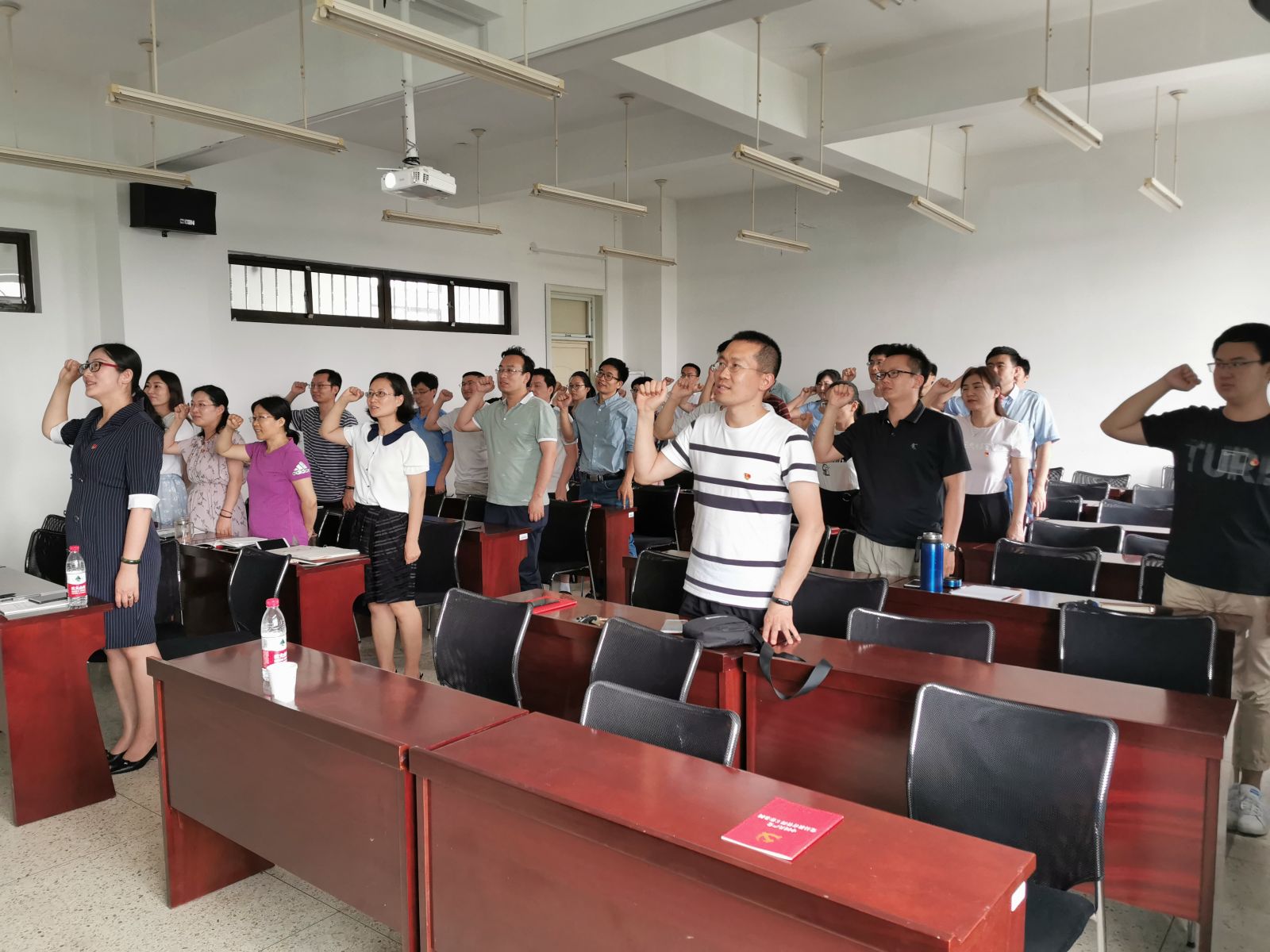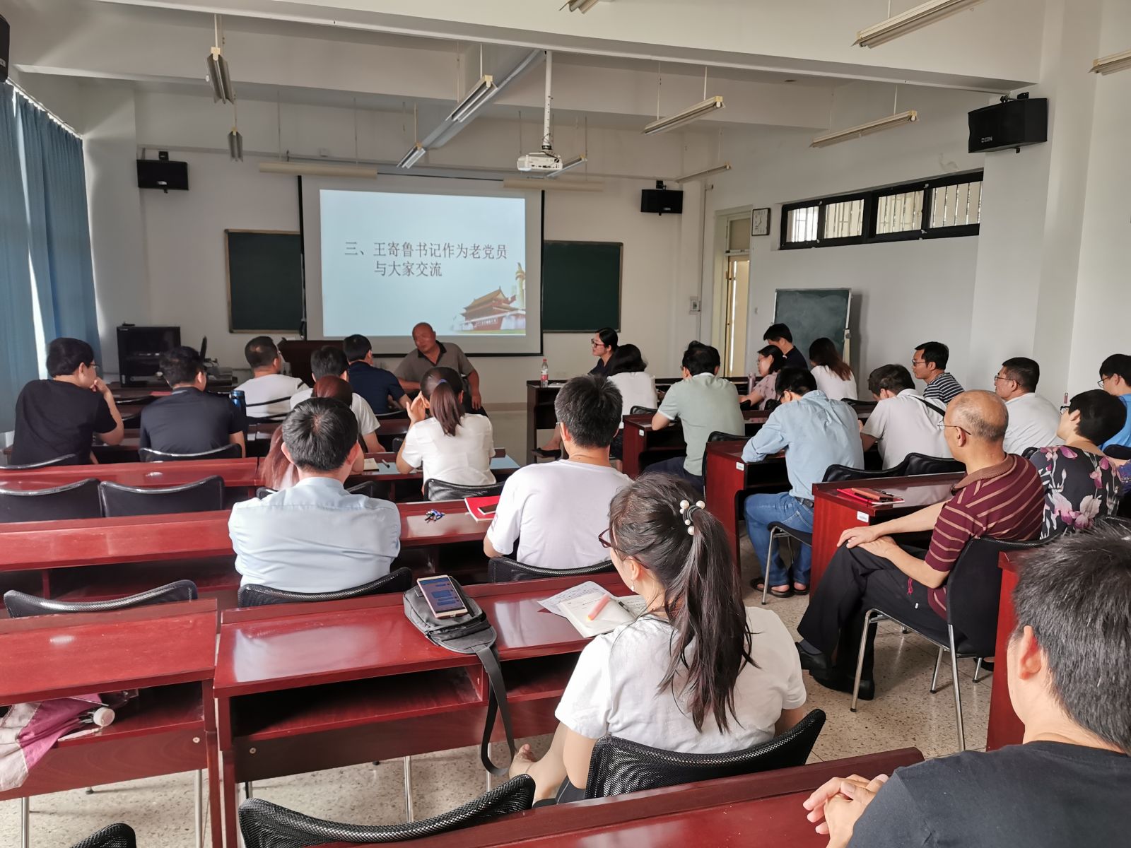 活动中,与会党员在自学了《中国共产党党员教育管理工作条例》的基础上,进一步通过观看《条例》系列动漫,全面掌握《条例》基本内容,充分认识《条例》的重要意义。为学习老共产党员张富清同志的先进事迹,大家一同观看了《张富清:英雄本色》的视频资料,张富清同志一辈子深藏功名、无私奉献的崇高精神,是教育新时代党员坚守初心的生动教材。此外,为激发教师党员的奋斗热情、在实现学校“由大到强”历史性转变中勇于担当作为,学院邀请了王寄鲁书记为大家讲述学院发展故事,从学院成立之初的几人之力到如今人才济济、科研成绩佼佼,不仅使与会教师进一步了解了学院的发展历程,更让党员教师从老一代教师的奉献中树立主人翁意识,坚守初心、凝心聚力,为推动学院和学校事业的发展贡献力量。与会教师与王书记进行了交流,现场气氛热烈。活动最后,全体教师党员重温入党誓词,献礼建党98周年。