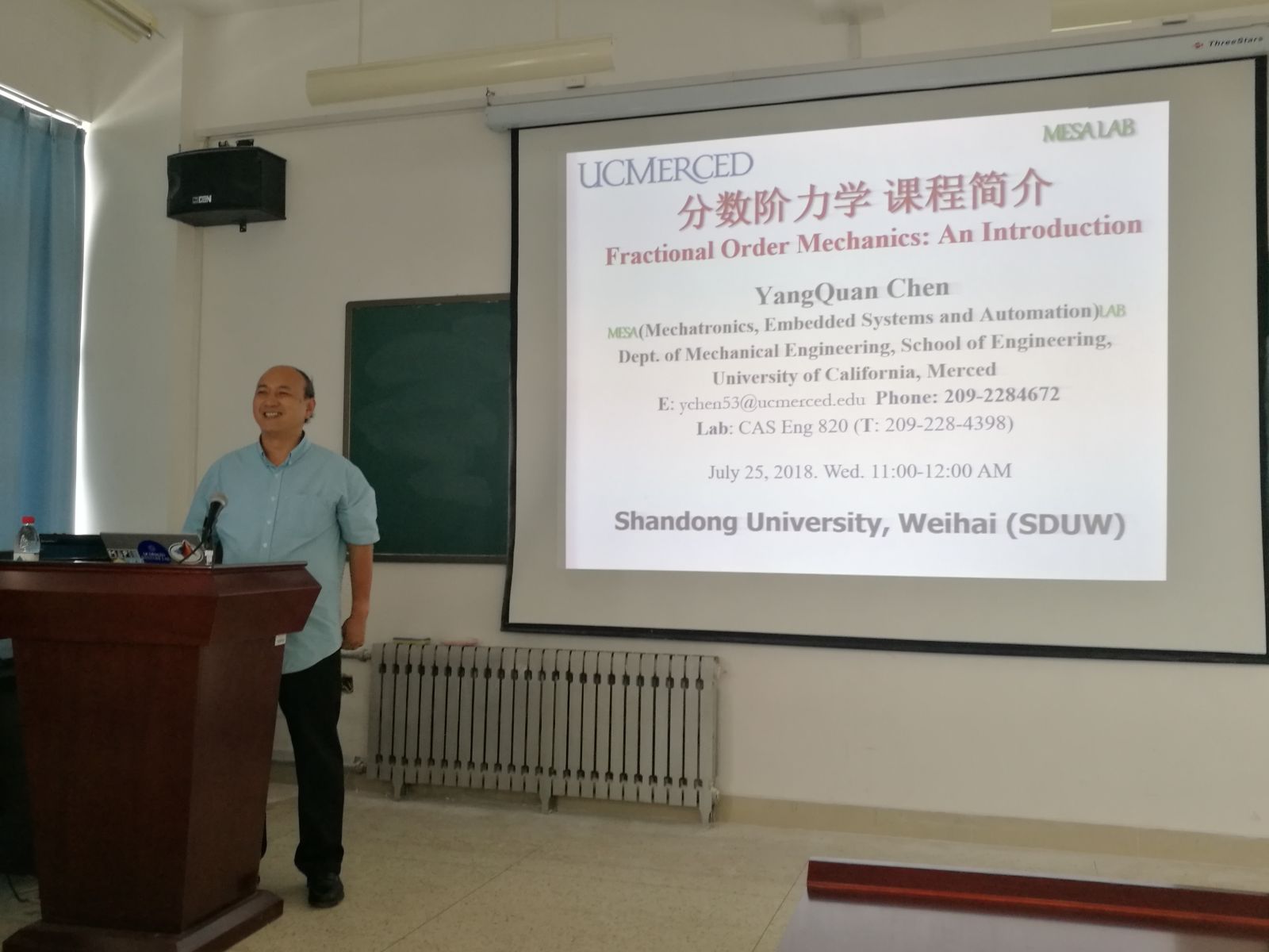 本站讯 7月25日,美国加州大学默塞德分校陈阳泉教授应邀来万象城官网进行学术交流,并在学院学术报告厅分别作了题为“Fractional Order Mechanics: An Introduction”学院部分师生聆听了报告。