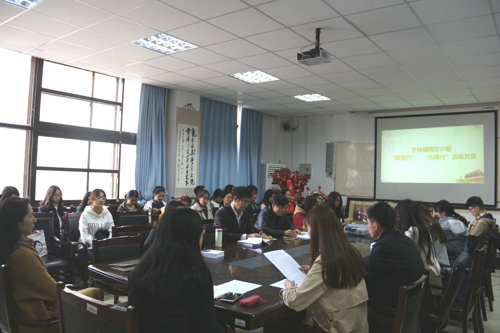 本站讯 10月18日上午,万象城官网于图东环楼208会议室举行“师长领航”党员实践活动启动会,学院党委书记单丙波、党委副书记王鹏飞和党委委员出席会议,2015级全体党员和2018级班委代表参加了会议。会议由院党委副书记王鹏飞主持。