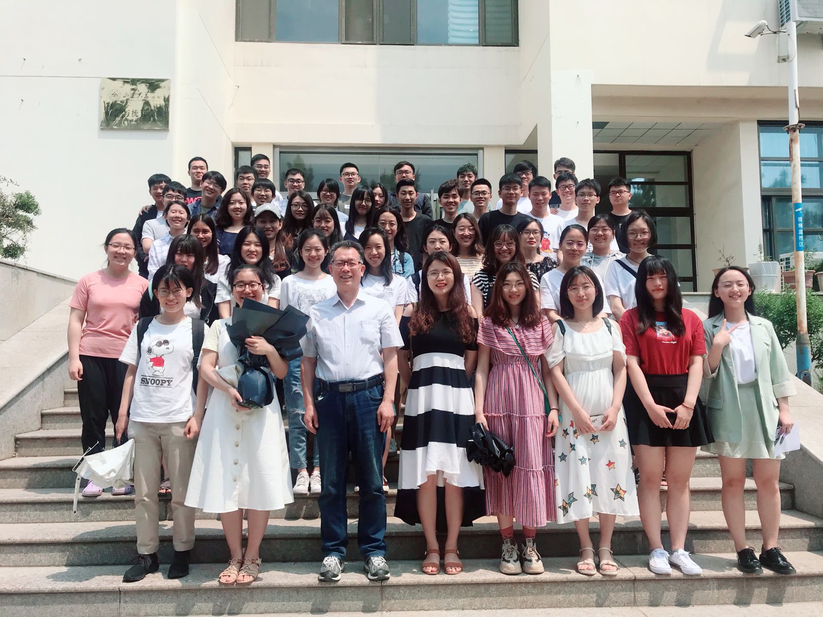 课前,同学们通过一段短片,共同回忆了大家大学四年的生活。为了拉近与毕业生的距离,綦建刚以座谈交流的形式为毕业生上好“最后一课”。围绕同学们对学习、对未来的思考,綦院长结合自己的人生经历,以诙谐幽默的言语,深入浅出、耐心细致地为同学们解答了疑虑,传授了生活之道和人生感悟。綦院长为毕业生送上毕业寄语,希望同学们常怀感恩之心,并祝愿同学们在今后的发展道路上一帆风顺,实现自己的梦想。交流结束后,同学们对綦院长报以持久热烈的掌声,由学生代表向綦院长献花,全体与会人员一同在数院门口合影,纪念这珍贵的一课。