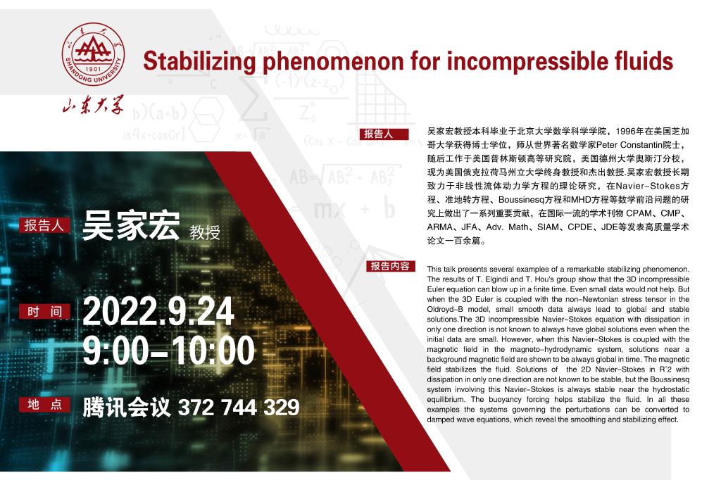 学术报告:Stabilizing phenomenon for incompressible fluids