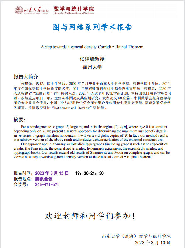 学术报告:A step towards a general density Corrádi–Hajnal Theorem