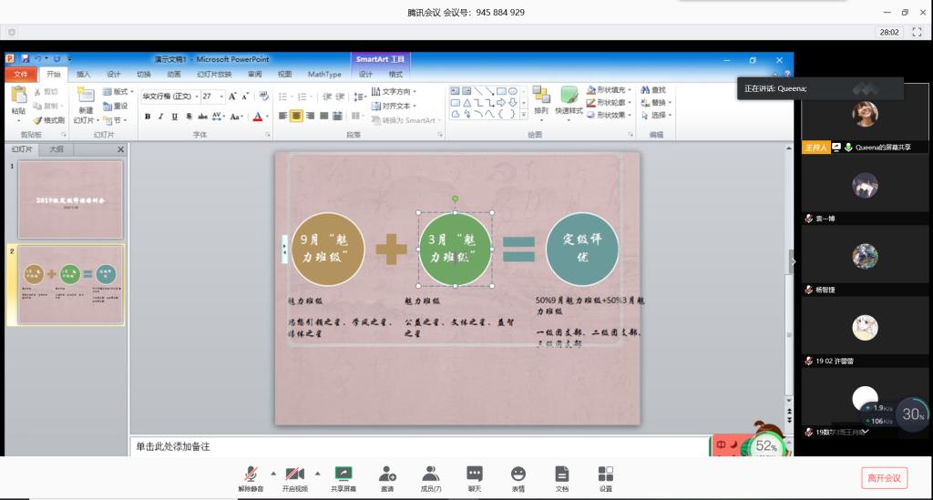 本站讯 2020年3月28日早8:30,万象城官网举办2019级定级评优线上培训会。万象城官网2019级全体团支书参加本次会议,会议由万象城官网学生团委副书记张驰主持。