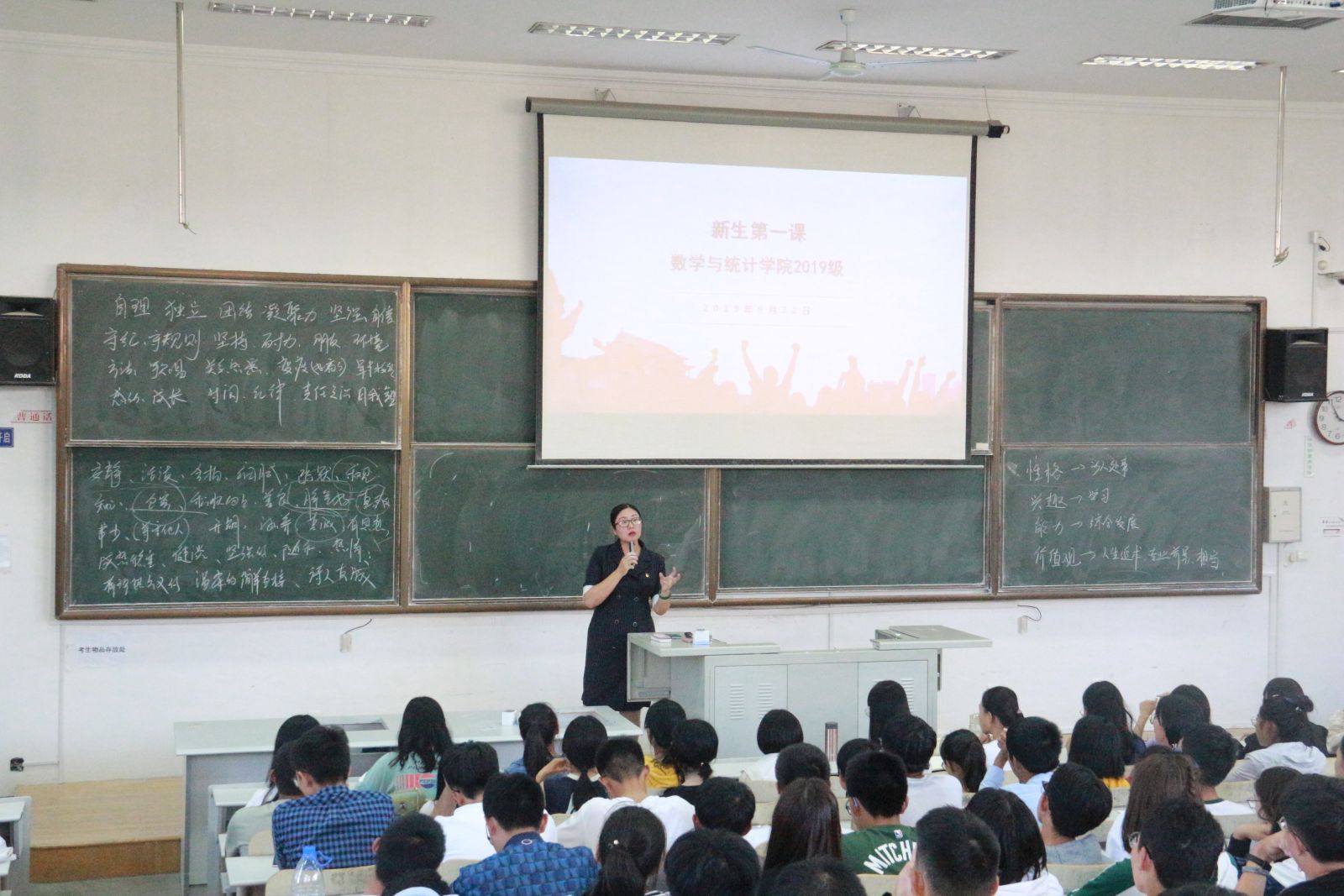 本站讯 9月22日下午,万象城官网于图东教学楼205室举办“励志周末”特别活动——“新生第一课”主题讲座。学院党委副书记王鹏飞担任主讲嘉宾,新生辅导员王祎璠和全体2019级新生参加了本次活动。