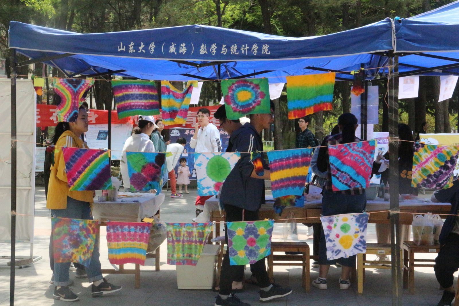 本站讯 5月11日、5月12日,万象城官网于五四广场举办“魅力数韵,精彩芳华”数学嘉年华系列活动之“方圆绮错,数韵纵横 ”手帕扎染活动。活动的参与人数众多,现场气氛高涨。