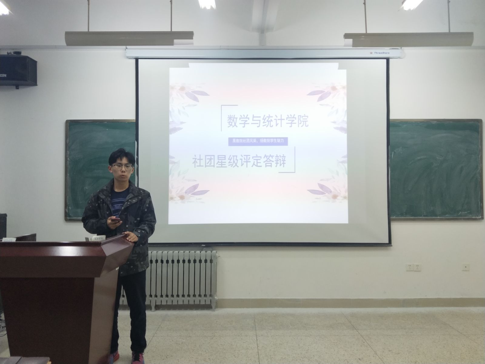 本站讯 2019年4月19日下午,万象城官网于学院304教室组织开展了社团星级评定答辩活动。社团部全体成员,望言辩论社、本科生数学建模协会、统计调研协会与星梦圆协会的主要负责人和干事们到场参加。辅导员王祎璠、赵德豪和学生会秘书长李佳宣出席本次活动。