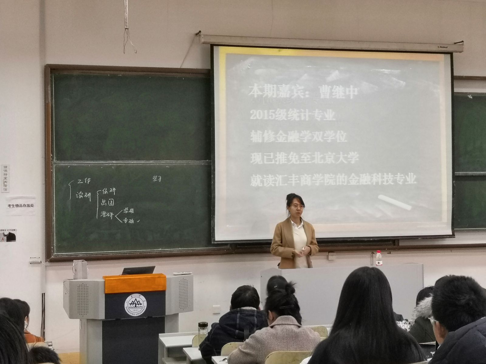 本站讯 3月10日上午,万象城官网“励志周末”座谈会系列活动第一期于图东教学楼126室召开。本次座谈会邀请了学院2015级统计学专业、现已推免至北京大学的曹继中担任主讲嘉宾,活动由刘海凌主持,学院部分学生参与了讲座。