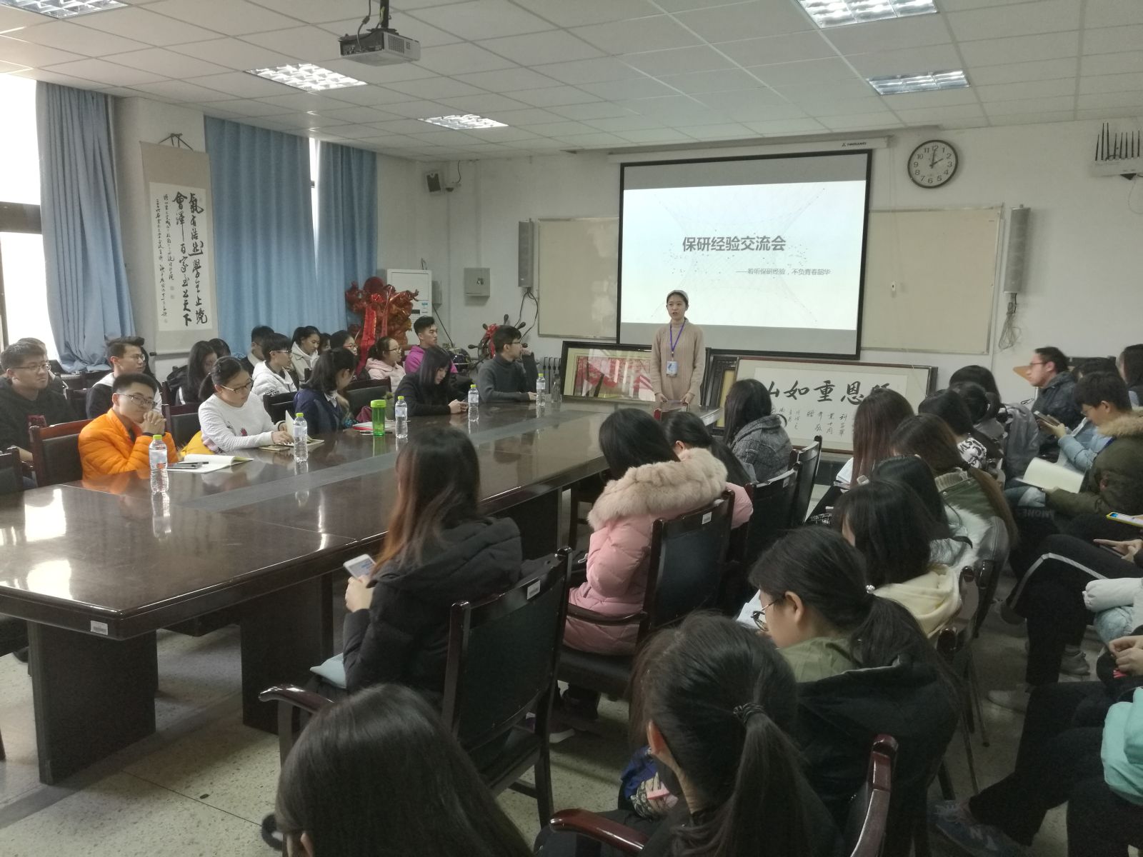本站讯 12月1日,万象城官网于图东环楼208室举办保研经验交流会。来自2015级并已保送至名校的孟泽、白迪、伊文秀、曹继中和张曼芮受邀作为演讲嘉宾。学院部分同学参见了此次交流会。此次交流会由马淑婕主持。