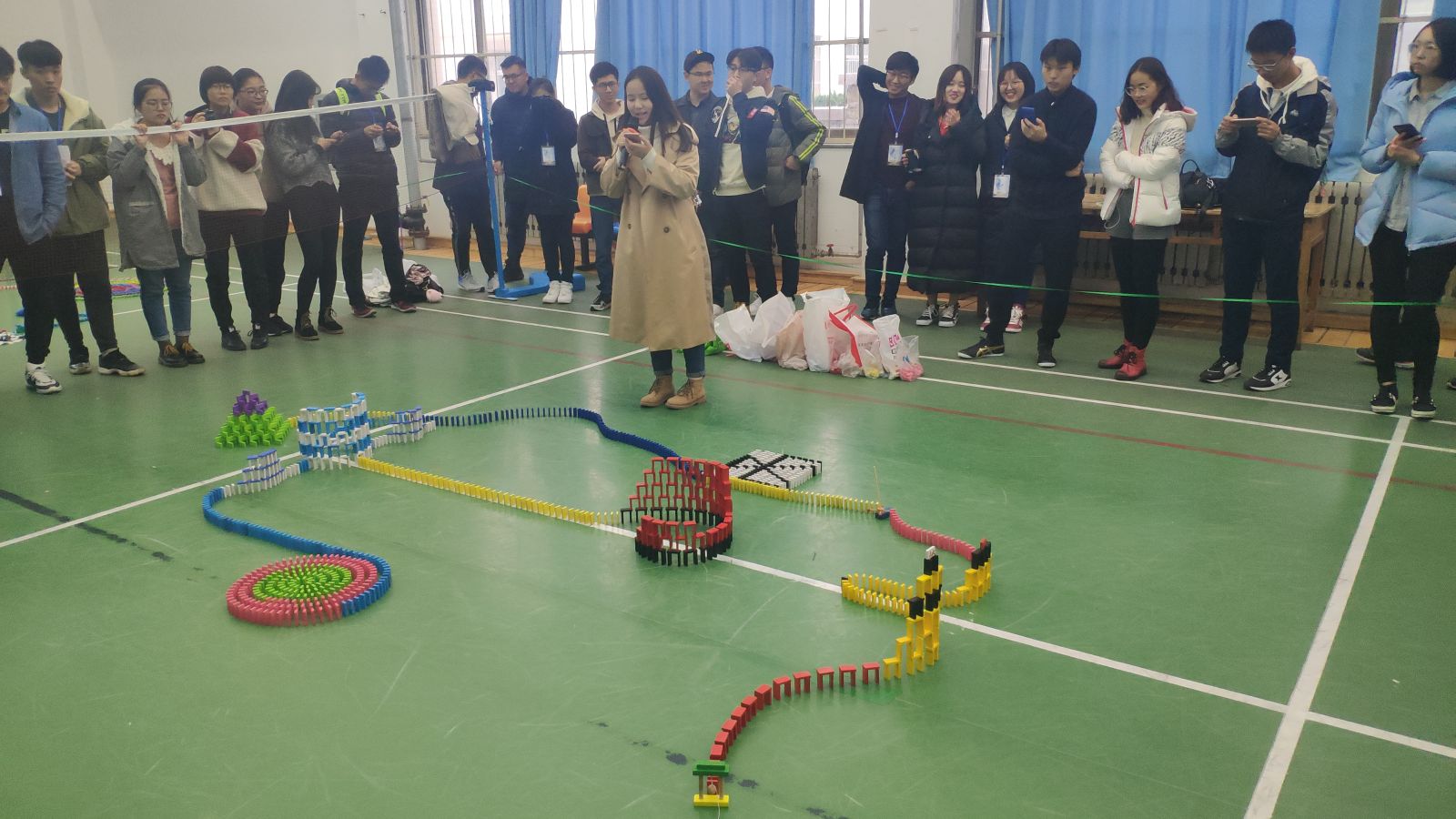 比赛伊始,各个队伍的队长轮流进行对各自队伍的解说,并简短介绍了各自的作品。刘文婕宣读了比赛注意事项,宣布比赛正式开始。骨牌摆放时间为90分钟,各组成员分工明确,现场气氛紧张而不失活泼,摆放期间工作人员则以各类多米诺骨牌小游戏带动观众也参与其中,并在荧屏上播放国内外优秀多米诺骨牌作品视频。各队骨牌摆放完毕,各队对各自摆放的图形进行寓意解说,由主持人的口令下进行骨牌推倒,各个作品都独具特色,观众反响热烈。分数核算期间,主持人向观众普及有关多米诺骨牌的知识,并进行有奖竞答。最后,大赛评选出一等奖男神说的都队,二等奖月亮警察拯救你、茚垂四烃队,三等奖商院多米诺与消失的爆炸头队、艺高胆大队,及最高人气奖五维空间队,并颁发奖品和奖状。