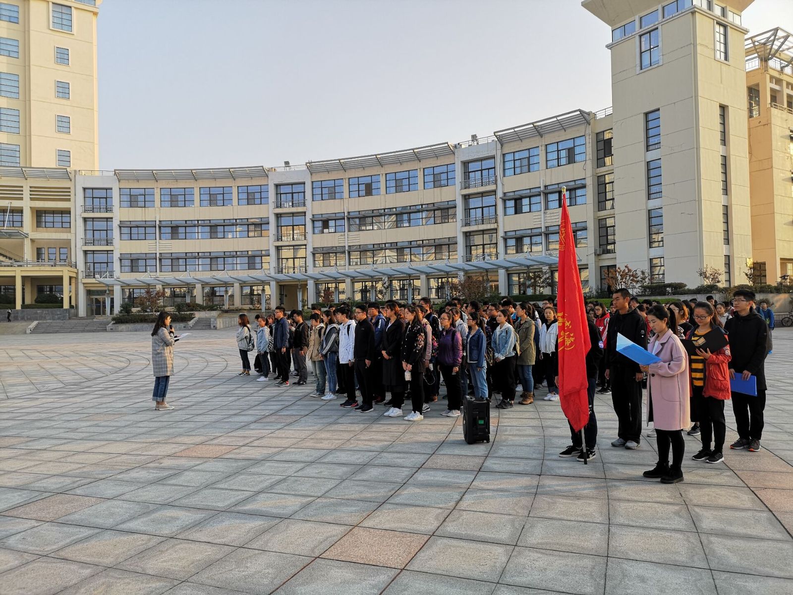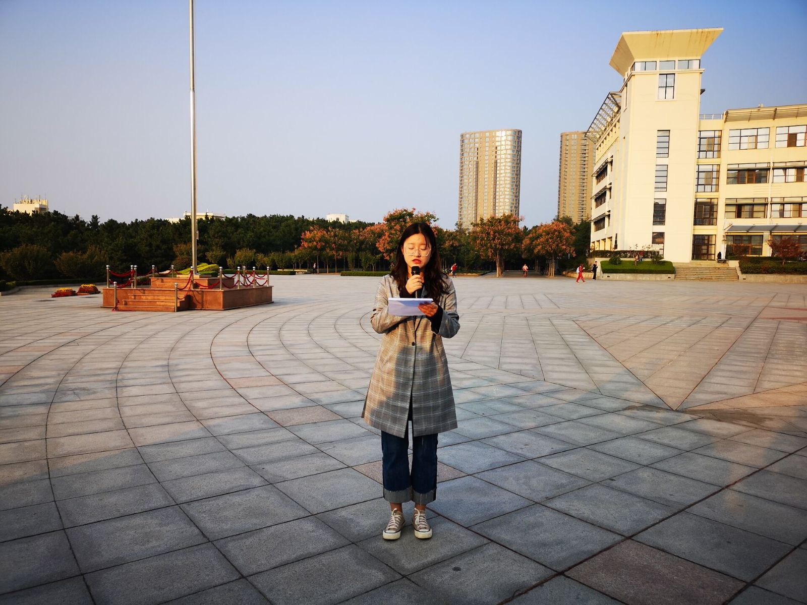 迎着朝阳,国旗班的护旗手们踏着矫健的步伐,以饱满的热情,庄严肃穆地护卫国旗进场。伴随着慷慨激昂的《义勇军进行曲》和同学们的注目,五星红旗冉冉升起。升旗礼毕,董珂向同学们介绍了本次活动的背景及意义,提出弘扬爱国主义精神,倡导青年学生爱国、爱党、爱校,加强团的组织建设,继承、发扬优良传统,激发同学爱国热情,引导同学争当时代青年先锋,在实现共青团事业新发展的进程中建功立业,充分展示我们院的良好精神风貌。董书涵就如何紧跟时代步伐成为一名优秀青年问题进行了题为“沐六十九年春风化雨,育爱国爱党爱校精神”的国旗下演讲。在演讲中呼吁广大同学热爱学习,热爱科研创新,热爱社会实践,走好自己所走的每一步,为实现自己及国家的中国梦做贡献。张弛和吕志超诗朗诵《我的梦》,以此倡导同学们坚持梦想,爱国爱党爱国家,做新时代优秀青年。
