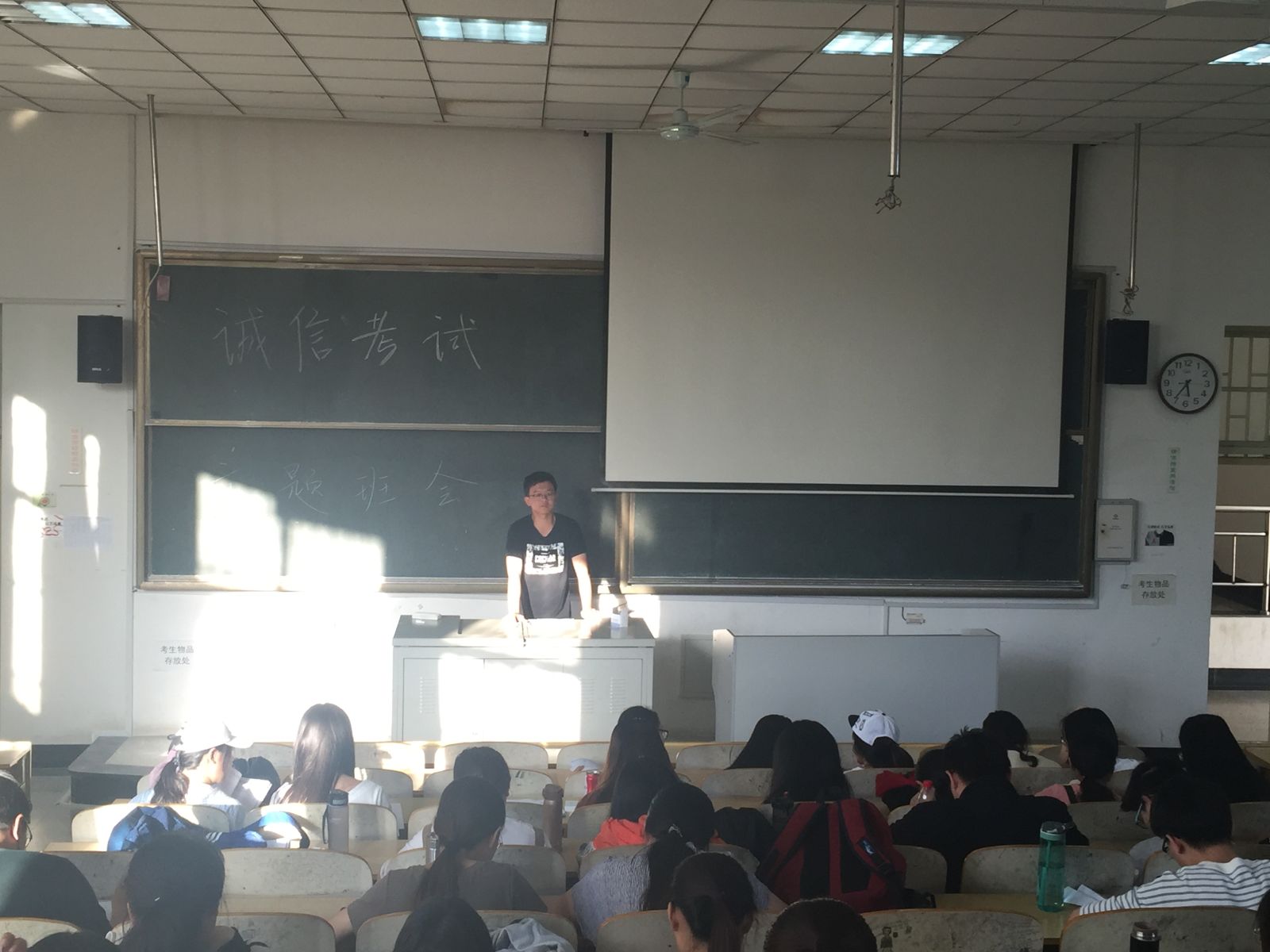 本站讯 2018年6月1日,万象城官网2016级统计二班于图西教学楼126教室举办诚信考试主题班会。本次活动由班长龚健欢主持,班级全体同学参加。