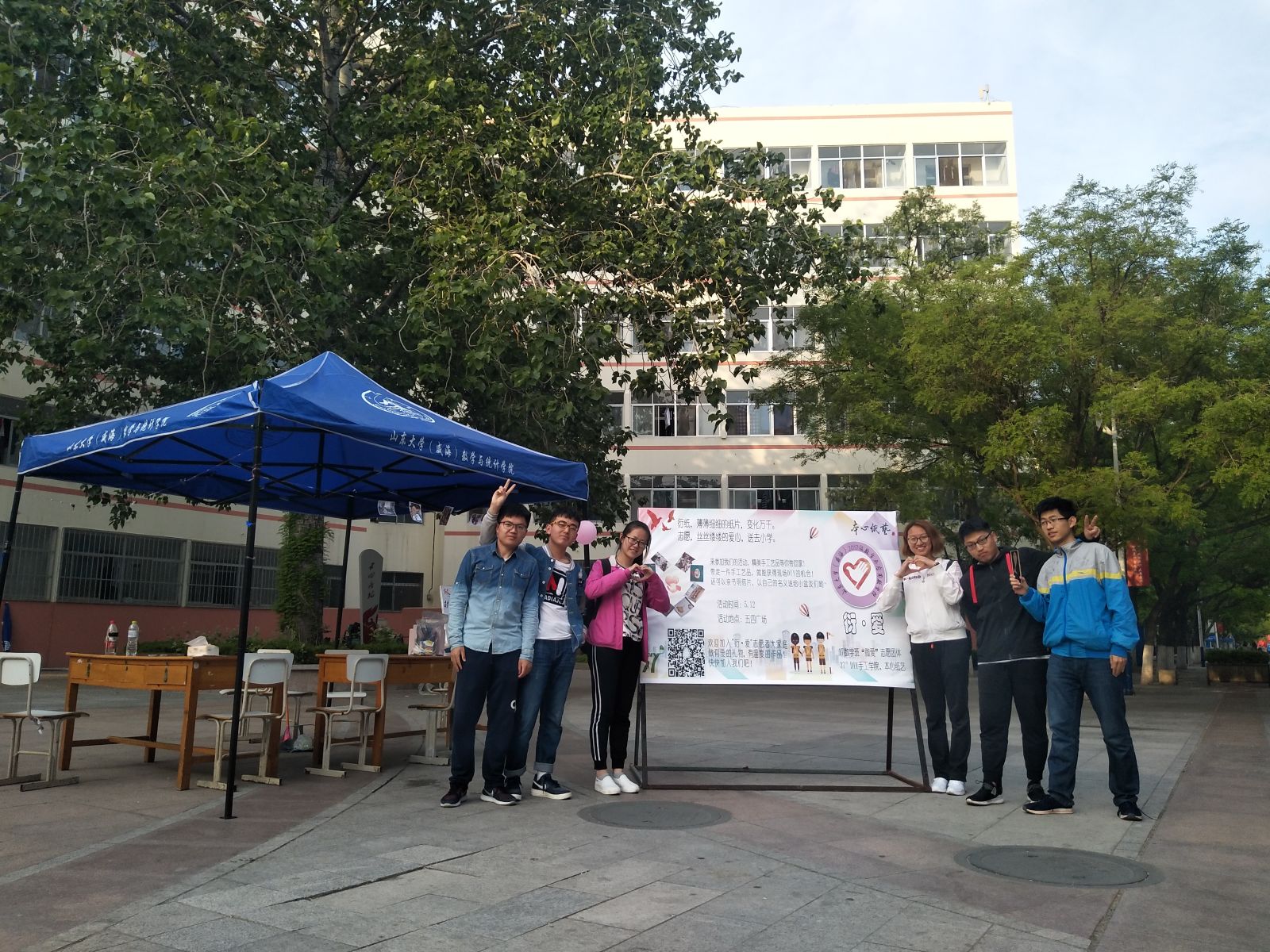 本站讯 5月12日,2017级数学与应用数学班携手37°DIY手工学院、本心纸艺在五四广场举办了“衍·爱”DIY手工作品义卖活动。此次活动由班长夏炳权、就业委员魏佳佳、以及37°DIY手工学院栾俊喜学长牵头举办,班级同学参与制作和义卖。