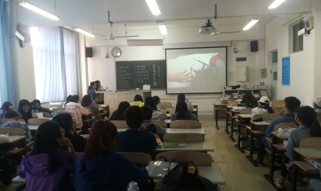 下午2时30分,活动准时开始。活动分为三部分。首先,进行听歌识曲环节,吴洁为大家播放准备好的十首古风歌曲,意在通过古风歌曲活跃奠定活动基础,调动大家热情,为接下来的环节开展做好准备。紧接着,吴洁为同学们播放了关于折扇、面具的知识介绍及手绘方法,使同学们加深了对折扇及面具类中国传统民俗作品的了解,并从中汲取灵感。随后,进入绘制环节。班级同学根据随机分成的小组对面具、折扇各自选择主题进行绘制,并按组号依次上台展示作品,并介绍绘制思路。至此本次活动落下帷幕。