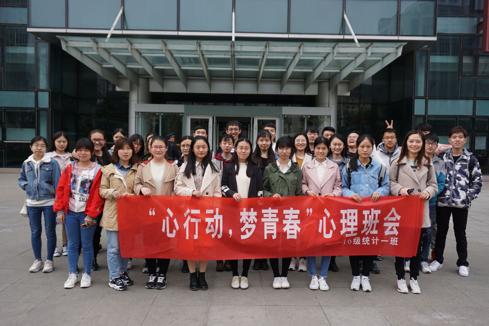 本站讯 2018年4月13日,2016级统计一班于威海科技馆举办“心行动,梦青春”主题心理班会。本次心理班会由心理委员王泽航、宋嘉琪主持,班级全体成员参加了本次活动。