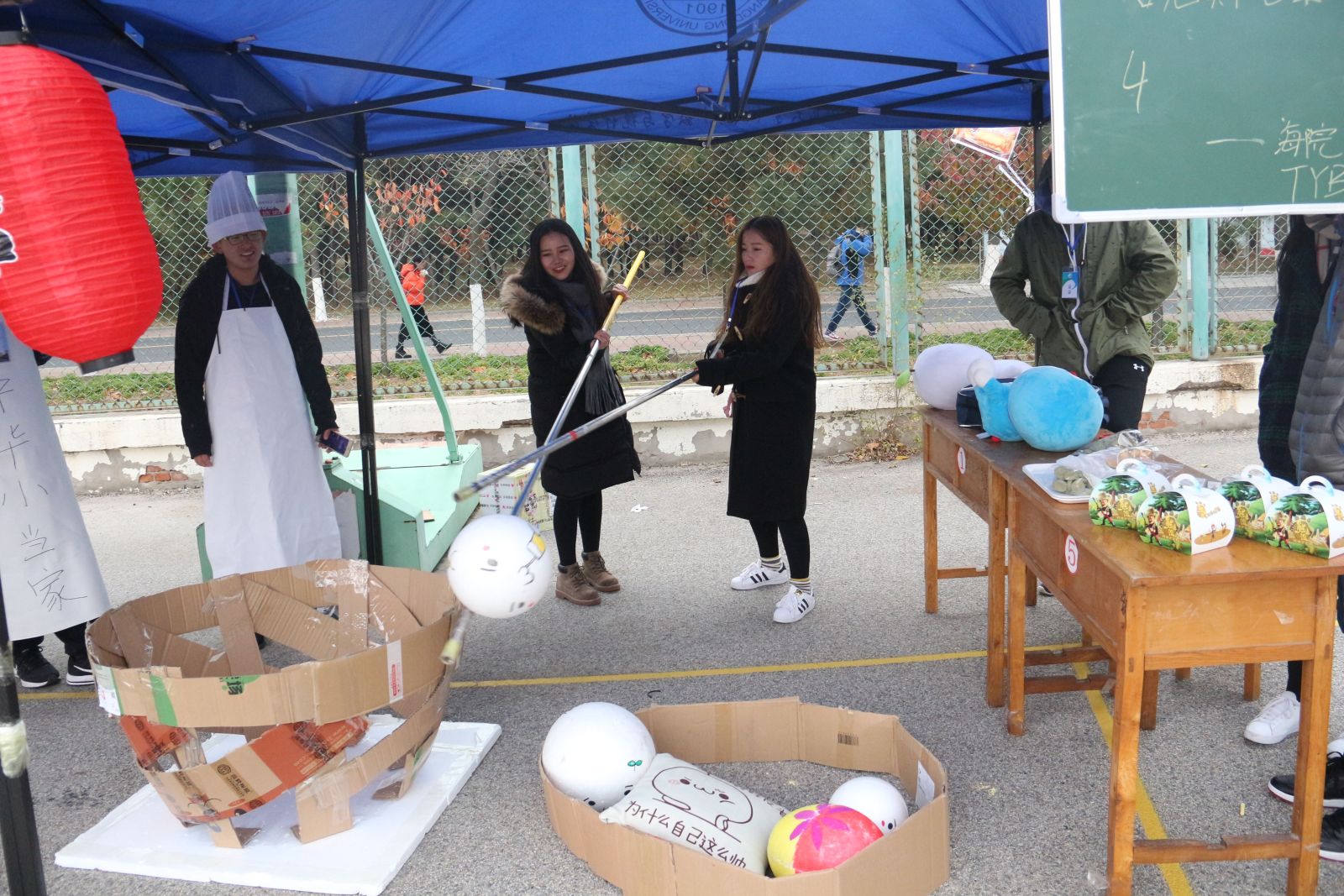 “中华小当家之超级大筷子”以著名漫画中华小当家为背景,由两位参与者合作,用两根特制的“大筷子”,把准备好的物品于一分钟内夹入碗中,将至少一个道具移到指定位置即为通关,破记录者将有奖品相送,并将成绩记于校园吉尼斯记录中。新颖的活动形式和丰厚的奖品吸引了众多同学前来参与。每位参与者先于登记处排队签到,领取属于自己组合的号码牌,按照序号依次游戏。参与的同学两两合作,分工明确,全神贯注,在其他参与者和围观者的加油和呐喊声中,共同将篮中的道具夹入碗中。成功将道具夹入碗中的参与者将获得一个印章奖励,从而参与吉尼斯嘉年华的抽奖环节。寒冷的天气丝毫没有阻挡同学们参与活动的热情,参与者陆陆续续来到馨园篮球场参加活动,现场气氛非常热烈。