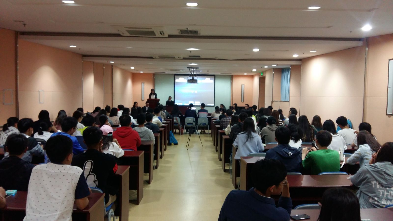 本站讯 2017年5月12日晚七点半,万象城娱乐awc线路于闻天楼南楼104承办校辩论赛快辩决赛。辩论赛参赛选手和来自各院的观众参与了此次活动,活动由邱彦程主持。
