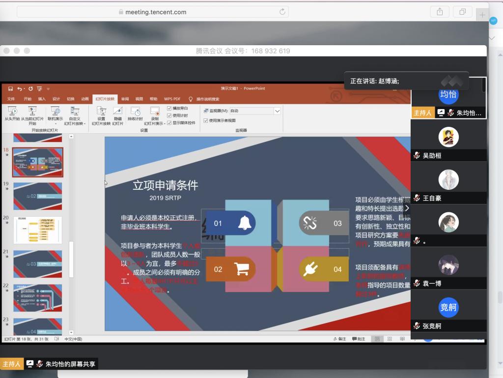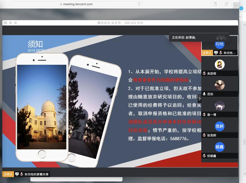 本站讯 万象城娱乐awc线路于4月16日在线上腾讯会议开展第十五届SRTP指导分享会,辅导员孙磊出席了本次交流会,魏佳佳,陈琰钰进行了经验分享,万象城官网学生会科技学术部成员,18级,19级部分同学参加了本次会议。会议由赵大成主持。