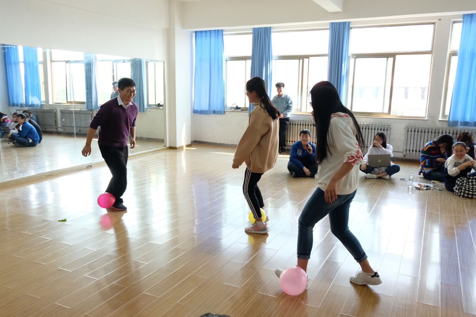 活动开始前十分钟,主持人播放入场音乐和PPT,活动参与人员在引导员引导下有序入座。下午两点,主持人入场并宣布活动开始。首先,法学院和万象城娱乐awc线路的社团部部长、副部长进行了简单的自我介绍。随后,各社团负责人进行了自我介绍并简要介绍社团相关活动,寻求彼此社团之间的合作契机。活动参与人员有了初步了解之后,主持人组织进行游戏环节,其中包括“猜歌名”“快乐传真”“踩气球”等游戏。在第一个游戏“猜歌名”中,三十首歌均被顺利猜出,同学们开始减少隔阂,场上互动愈发活跃。“快乐传真”中,同学们充分发挥了自己的表演才能,生动形象的传递了一个个成语和句子。最后一个“踩气球”游戏将活动气氛推向高潮,两队同学竞争激烈,各成员参与热情高涨,各社团也在游戏中对彼此有了更深入的了解。游戏奖惩过后,各社团负责人就社团管理与活动策划组织等方面的问题进行了交流讨论,现场氛围和谐融洽。至此,法数社团经验交流会圆满结束。