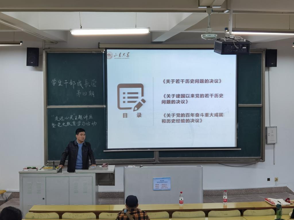 本次活动旨在提升学生干部的党史领悟,促进学生干部的综合成长。在本次活动中,辅导员赵宇轩从《关于若干历史问题的决议》、《关于建国以来党的若干历史问题的决议》、《中共中央关于党的百年奋斗重大成就和历史经验的决议》三个重要决议对本次党史学习进行讲解。首先,他详细的介绍了党的历史上三次重要决议的背景及其重要作用。接着,他以华为、中兴等事件为例使同学们明白了只有将核心技术掌握在自己手里才能真正强大,从而激励同学们刻苦学习,成长为一个有用之才。最后,他以党中央的号召作为结束语,以此鼓励同学们不忘初心,牢记使命,砥砺前行,为早日参加社会主义现代化建设和中华民族的伟大复兴积蓄力量。