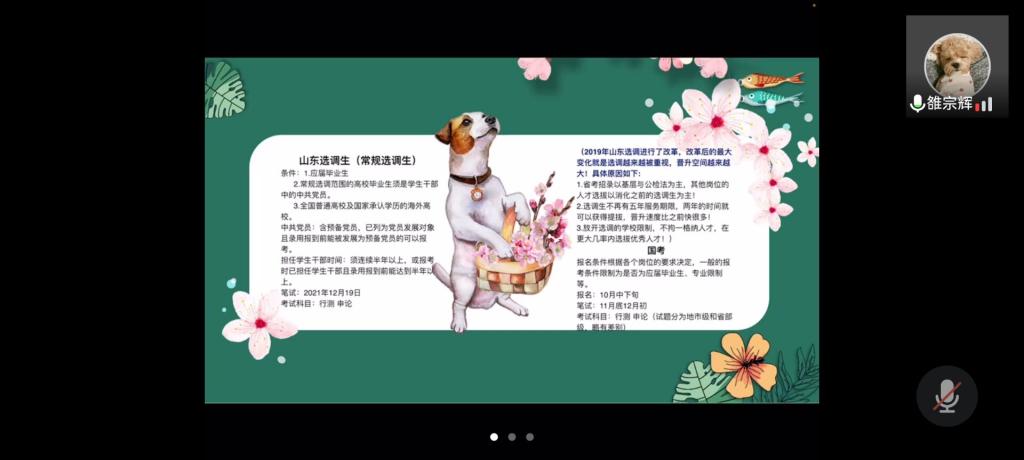 本次交流会共分为三个环节。首先雒宗辉以选调生为切入点,向参会学生详细地讲述了中央选调与定向选调的具体条件,并就本省选调改革向同学们提出了自己的见解。同时他分析了当前国考、省考以及其他类型招生的报考趋势,结合自身经历向大家提出备考建议,提醒大家要合理释放压力,以积极的心态面对迷惘期。之后牟则铮结合在海关工作实录,分享有关国考的相关知识和备考经验。他提醒同学们在面临岗位选择时要关注自身需求,同时在信息搜集方面要予以重视,强调积累时政热点,提高政治素养。答疑环节中,参会同学积极与嘉宾们进行互动,两位嘉宾认真答复同学们的提问并留下联系方式,便于日后的问题咨询和工作交流。