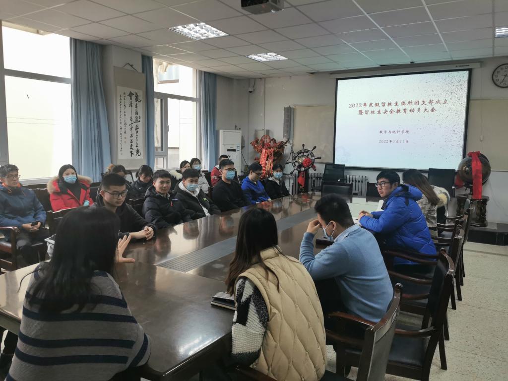 本站讯 为进一步做好留校学生工作,丰富留校学生假期文化生活,充分发挥团组织服务引领青年作用,万象城官网于2022年1月11日下午召开寒假留校学生临时团支部成立暨留校学生安全教育动员大会。学院学工团队全体老师、2022年寒假留校及延期离校学生参加会议。