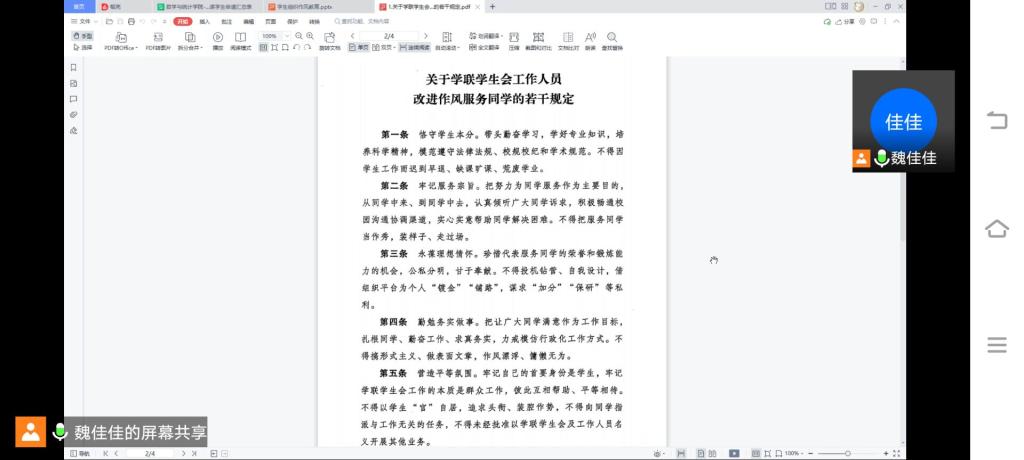 本站讯 为深入贯彻落实全国学联二十七大精神,进一步落实共青团中央、教育部、全国学联《关于推动高校学生会(研究生会)深化改革的若干意见》《关于学联学生会工作人员改进作风服务同学的若干规定》等相关文件精神,进一步加强院级学生干部的作风建设,9月1日下午,万象城娱乐awc线路通过腾讯会议召开学生组织作风培训会。院团委书记孙磊,院学生会指导老师魏佳佳,院学生会、团学中心及院管社团学生骨干参加此次会议。